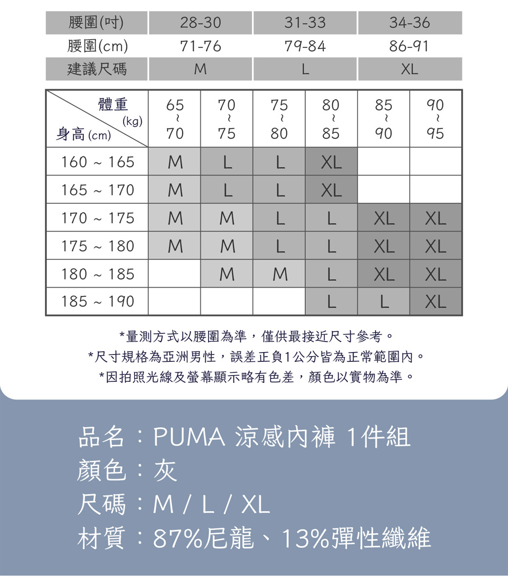 PUMA 涼感內褲 1件組 彪馬 跳豹 男內褲 冰絲內褲 平口內褲 涼感 彈力 貼身 絲滑 冰涼 透氣 抗菌 無痕 灰