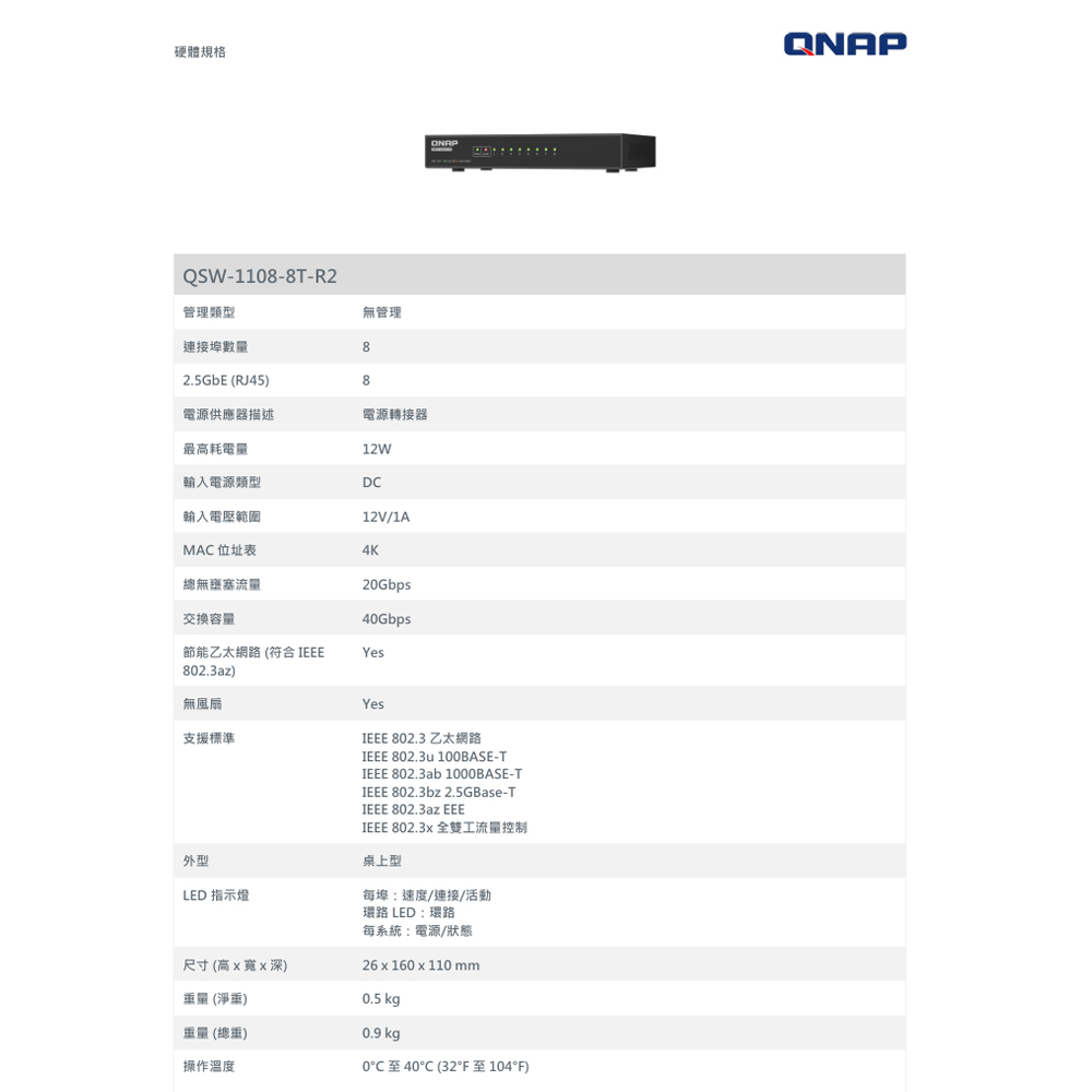 2.5G Multi-Gig 連線:8 埠 2.5GbE RJ45 (支援 2.5G/1G/100M),總背板頻寬達 40Gbps。