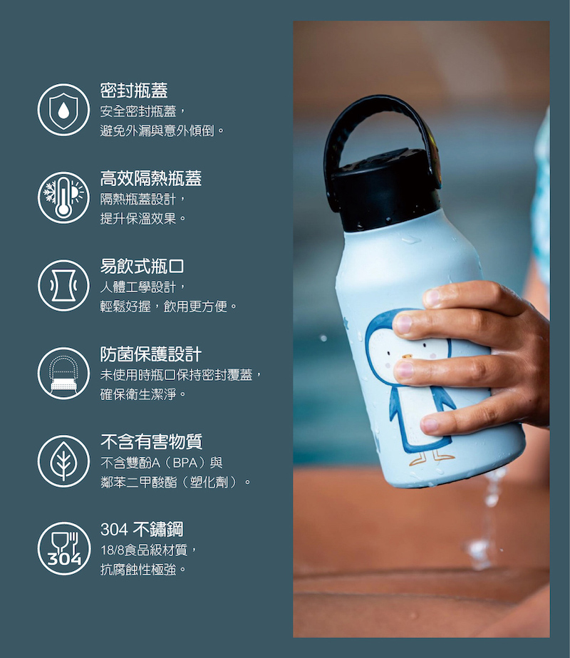 ●不鏽鋼雙層真空技術,有效提升保溫性能,並防止瓶身外層凝結水珠