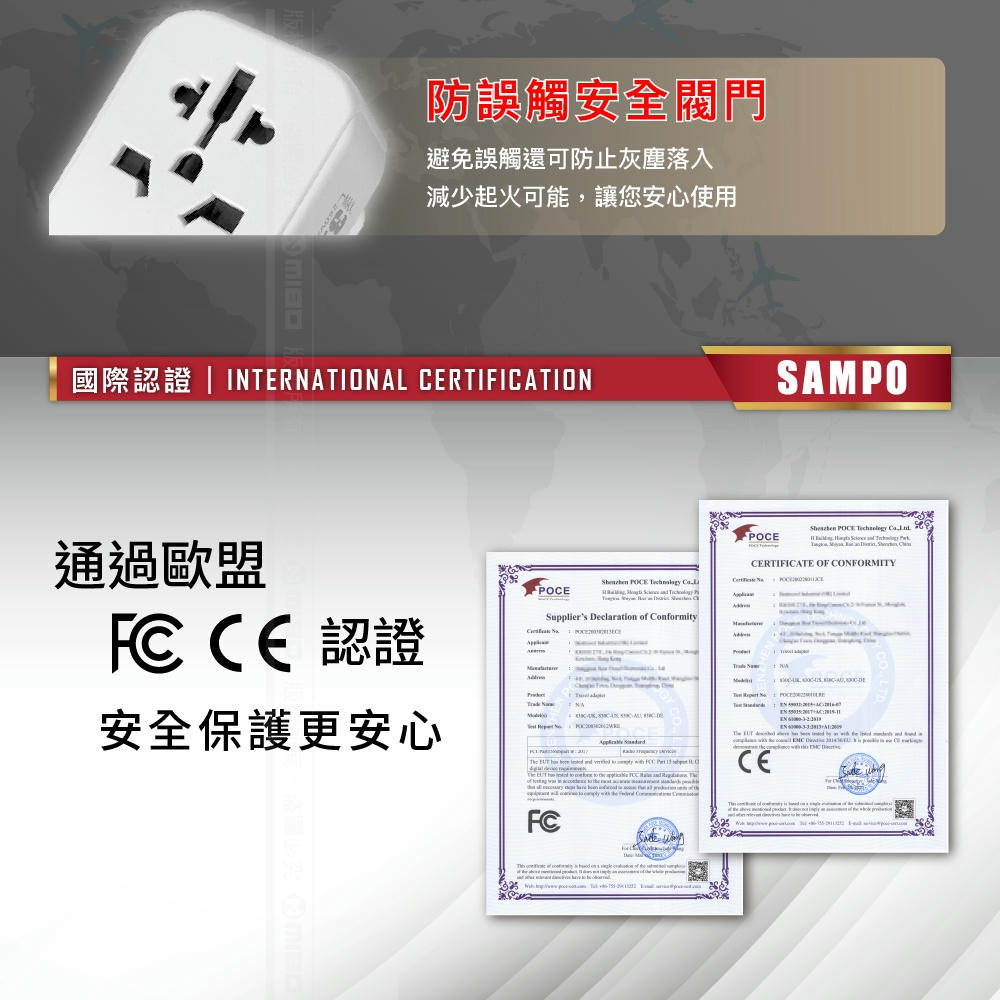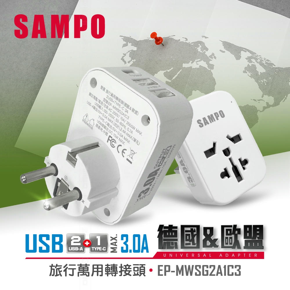 SAMPO 聲寶 EP-MWSG2A1C3 USB 旅行萬國轉接座
