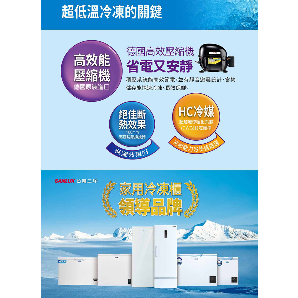 SANLUX Taiwan Sanyo 200L -60°C Ultra Low Temperature Upright Freezer TFS-U200G