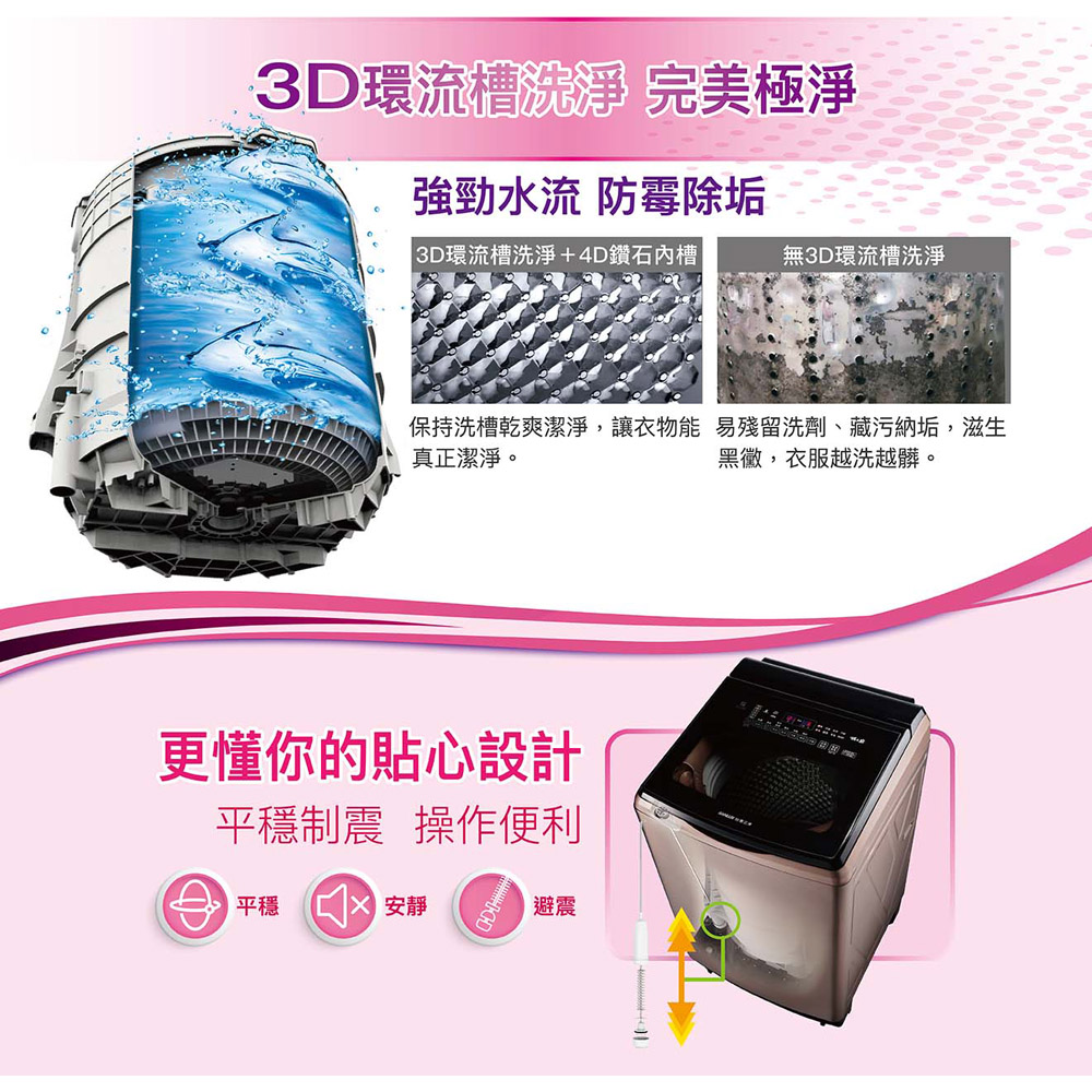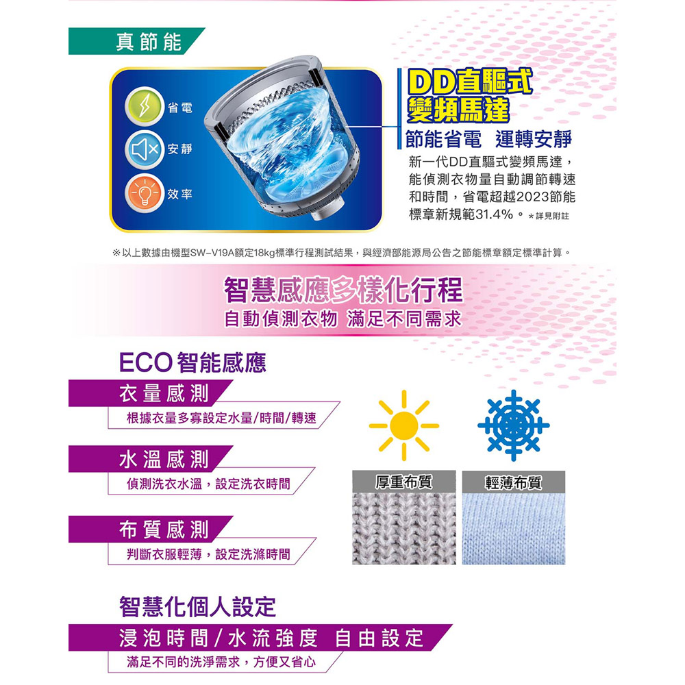 洗衣行程選擇:標準、污髒、快速、記憶、毛毯、柔洗、護嬰、槽洗淨