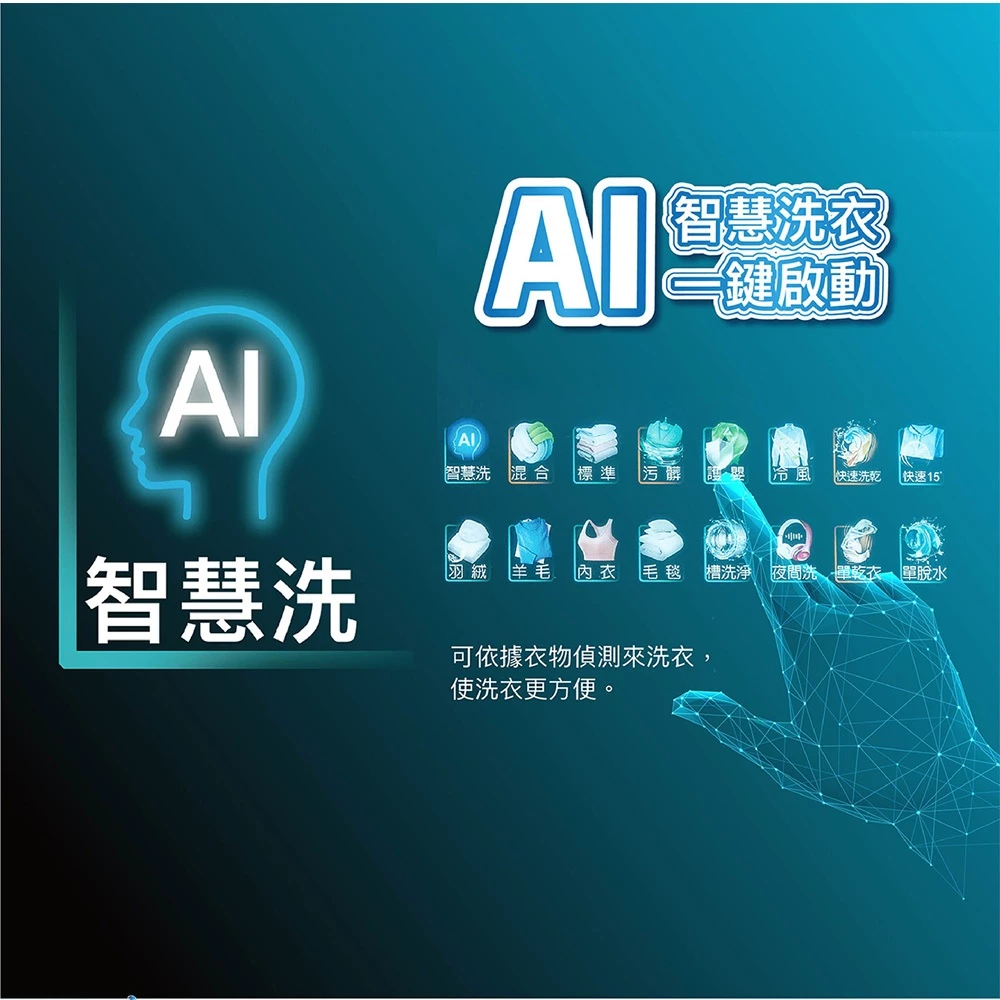 ※洗衣行程選擇:智慧洗、混合、標準、污髒、護嬰、冷風、快速洗乾、快速15分、羽絨、羊毛、內衣、槽洗淨、夜間洗、單乾衣、單脫水
