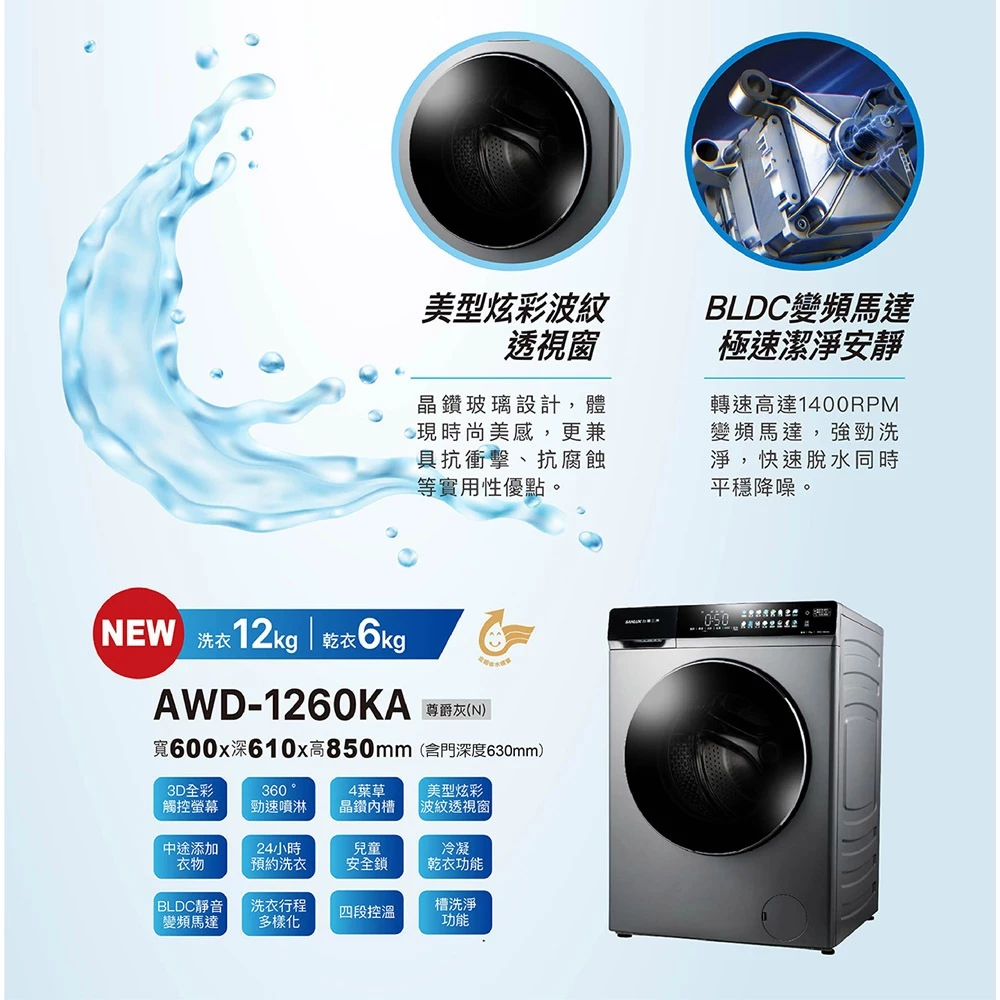 SANLUX 台灣三洋 12公斤變頻洗脫烘滾筒洗衣機 AWD-1260KA