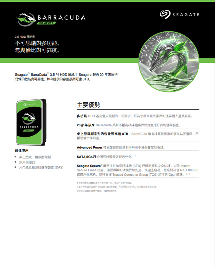 昌運監視器 Seagate希捷 BarraCuda新梭魚 2TB 3.5吋桌上型硬碟(ST2000DM008)