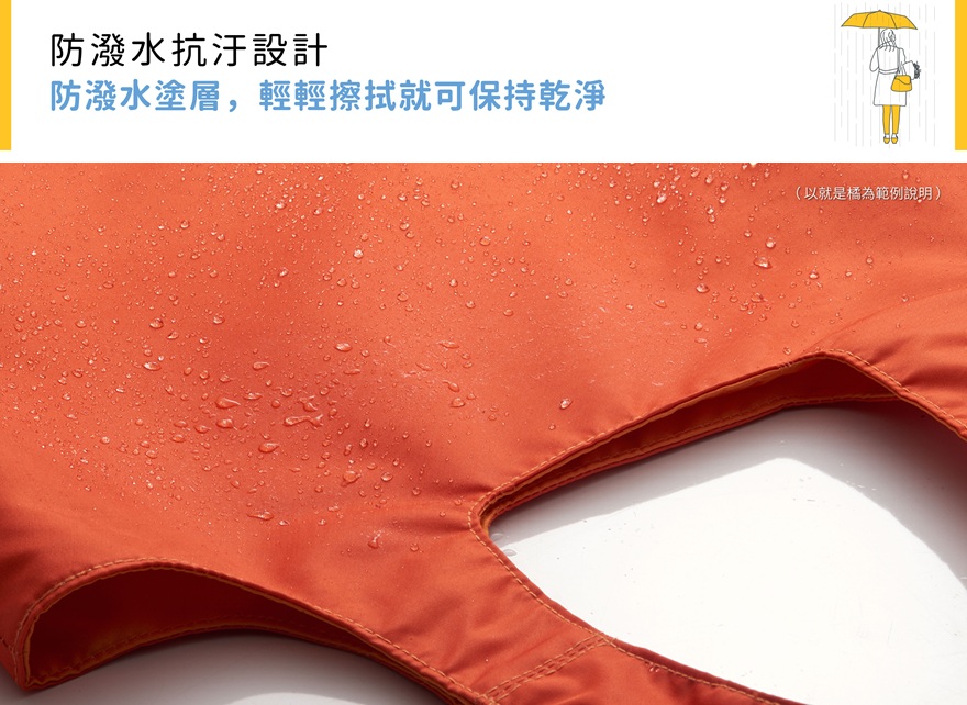清潔與保養: • 裡外所有布料皆使用回收寶特瓶再製而成的斜紋聚脂纖維,表面皆有防潑水處理,不擔心下雨天,只要輕輕一撥或用乾布擦拭即可。即使附著髒汙,只要用濕布擦拭即可,非常容易清潔整理。 • 托特包布料內層有隱藏磁鐵,請勿丟進洗衣機清洗、勿用漂白劑。 以溫水手洗,輕輕擰乾後,在陰涼處放置到乾燥即可。