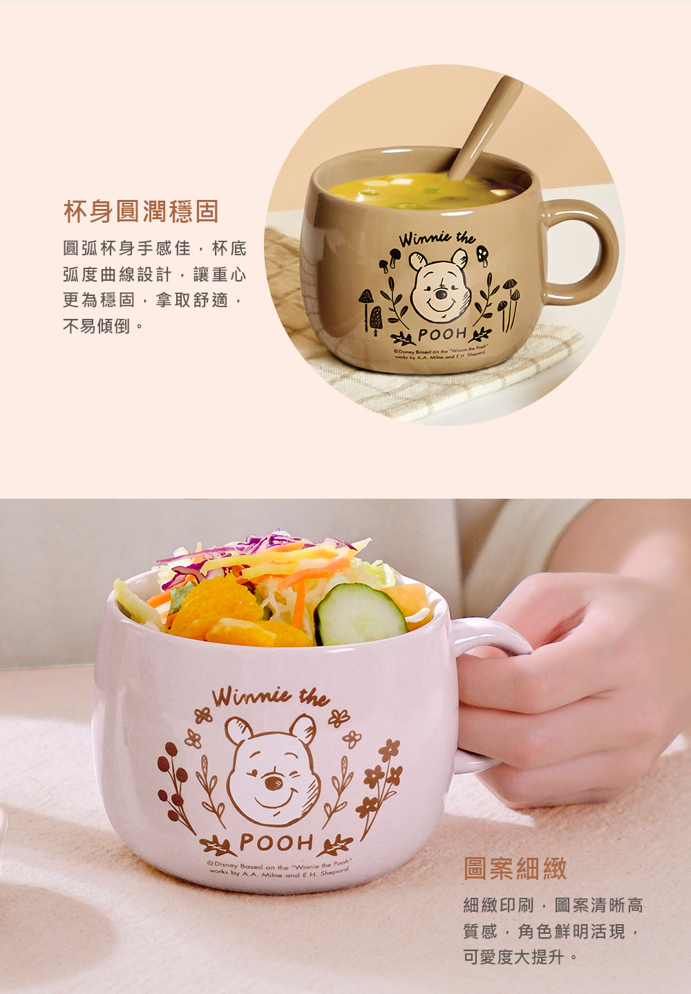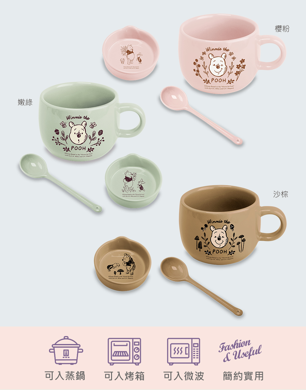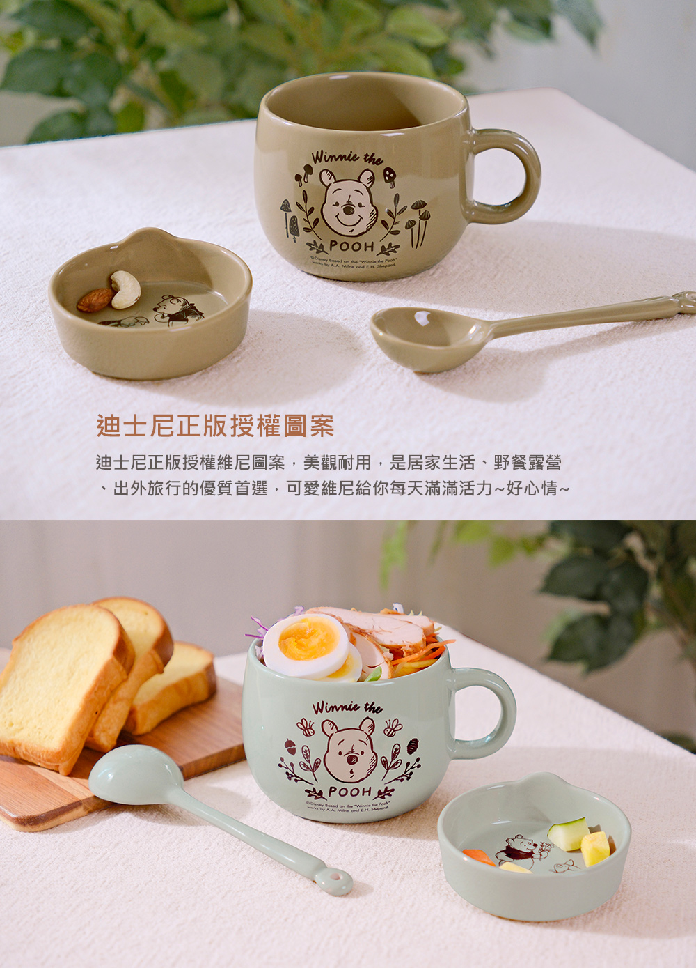Disney Winnie the Pooh Large Capacity Ceramic Mug Set 500ml (3 pieces per set, includes spoon/plate, colorful gift box) - Sand palm