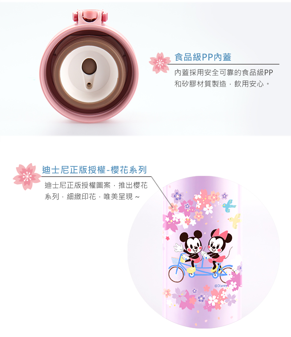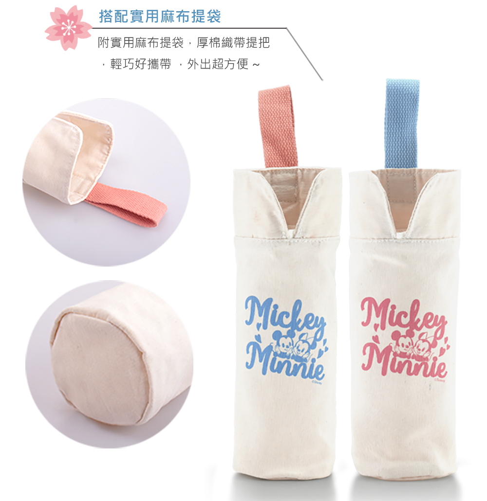 Disney Sakura Mickey Mouse 304 Stainless Steel Vacuum Bounce Insulated Bottle and Bag Set - Pink