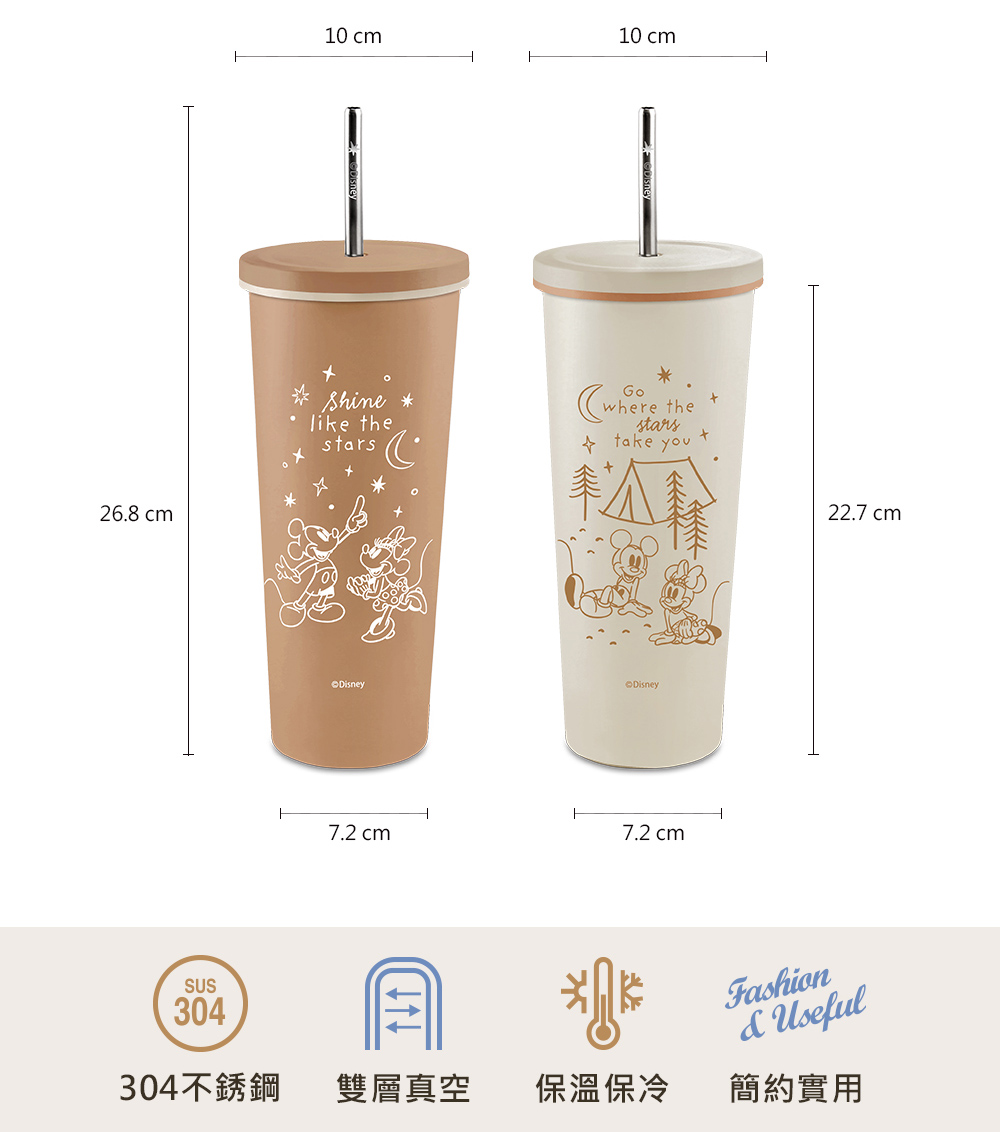 Disney Mickey Mouse Starry Night 304 Stainless Steel Vacuum Insulated Straw Travel Mug 700ml - Khaki