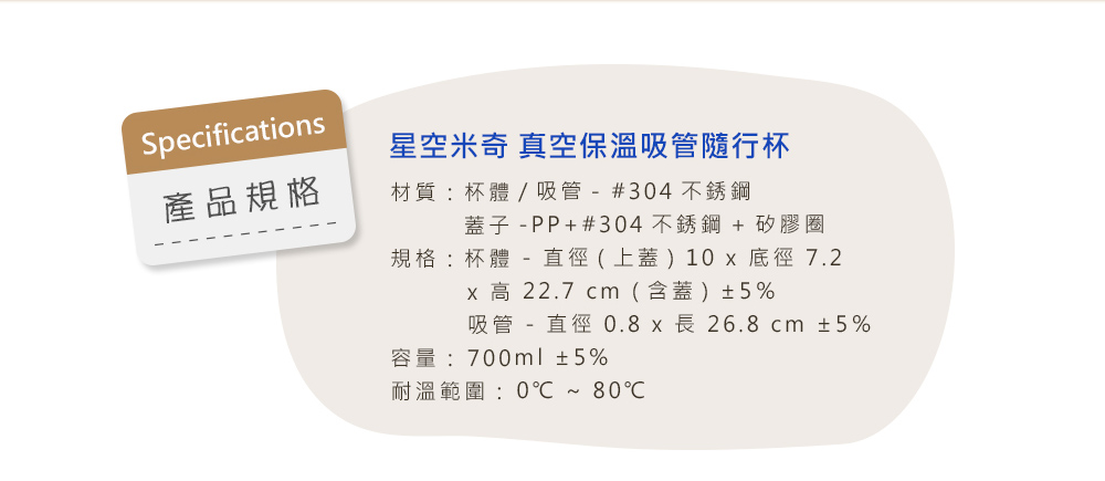 尺 寸:隨行杯 - Φ7.2 x 22.7 cm ± 5% / 容量:700ml ± 5%