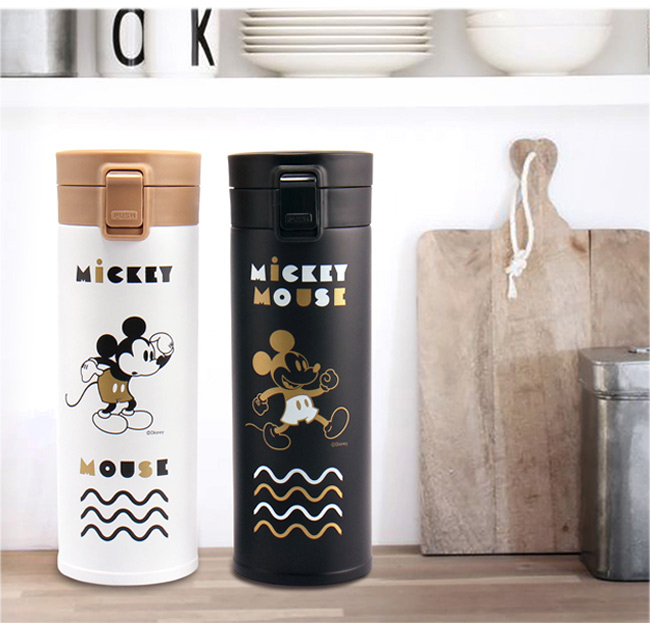 Disney Gold Mickey Mouse Stainless Steel Silicone Dual-Drink Vacuum Insulated Bottle 600ml (Lockable) - Obsidian Black