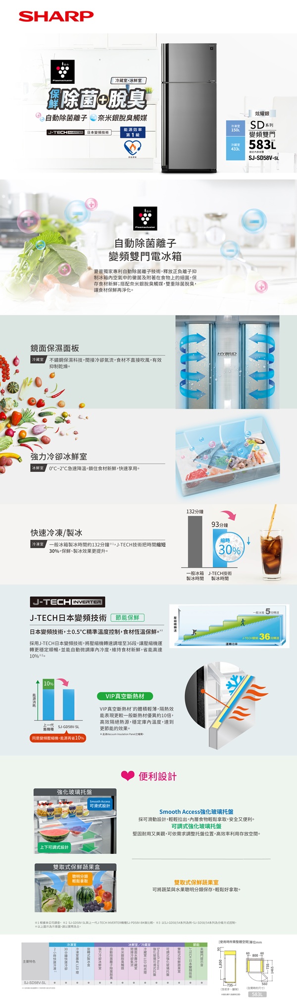 SHARP 夏普 SJ-SD58V-SL 583L自動除菌雙門變頻電冰箱