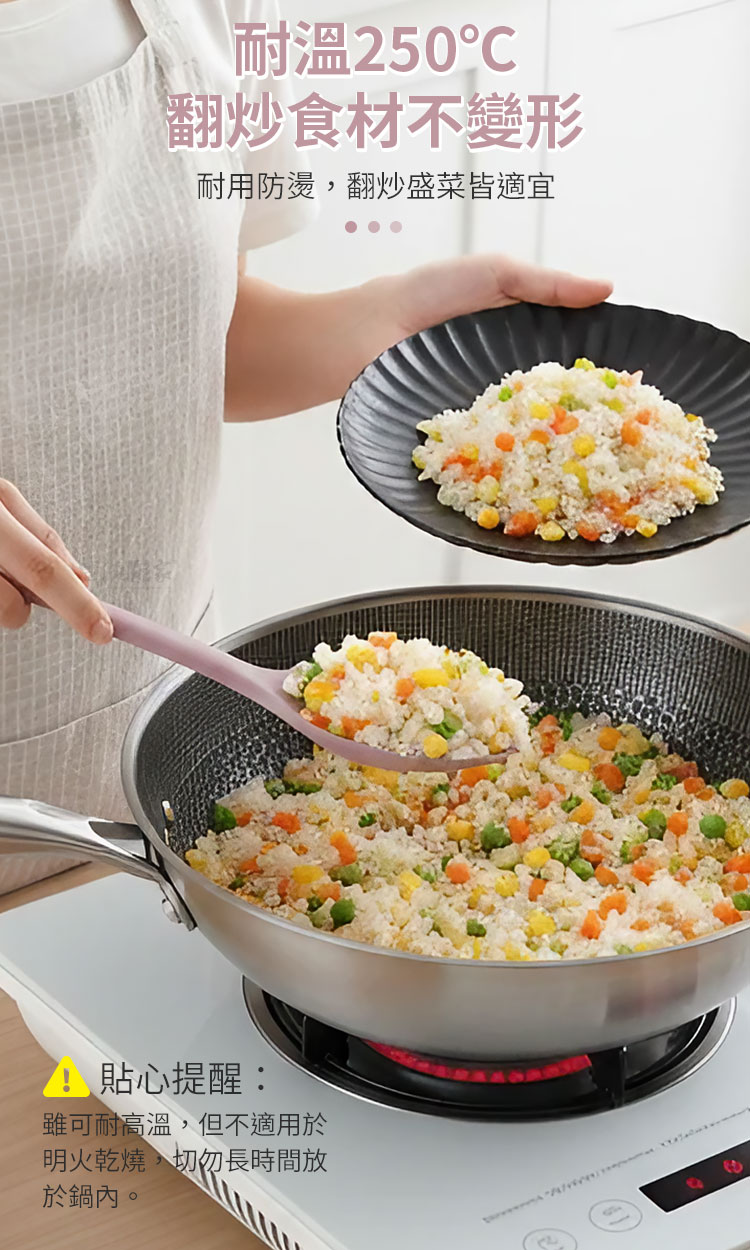莫蘭迪美學 x 專業護鍋 | 生活采家 全包覆矽膠扁勺鏟告別傳統廚具的痛點!厭倦了傳統金屬鍋鏟刮傷您心愛的不沾鍋?受夠了木質鍋鏟難以清洗、容易發霉的困擾嗎?✨ 生活采家 為您帶來廚房美學與實用性的完美結合—全包覆矽膠扁勺鏟!這不僅是一把鏟子,更是您優雅下廚、守護鍋具的秘密武器。採用符合食品級標準的矽膠,搭配耐用的尼龍骨架,讓您在250度高溫下也能輕鬆翻炒,享受無憂烹飪樂趣。💪頂級材質與結構設計:耐用、安全、高顏值👉【食品級矽膠、高溫耐受】:外層採用食品級矽膠,具備優異的耐熱性,可承受高達 250度高溫 (請注意:不適用於明火或長時間放置於高溫鍋內)。耐用防燙,讓您安心盛菜、翻炒,同時達到抗菌防霉的效果。👉【內建尼龍骨架,剛柔並濟】:獨特的外柔內剛設計,內部嵌入堅固的尼龍材質骨架,使勺鏟在翻炒食材時穩定不彎曲,兼具矽膠的柔軟和尼龍的支撐力,操作更輕巧、更順手。👉【一體成形無縫設計,易潔衛生】:徹底解決傳統多件式廚具接縫處藏污納垢的衛生死角。一體成形設計,表面光滑平整,髒污不易附著,清水沖洗即淨,可直接使用洗碗機、高溫水煮、紫外線或蒸汽消毒,清潔保養超級輕鬆!👉【護鍋專家,延長鍋具壽命】:矽膠材質柔軟有彈性,無論是不沾鍋、陶瓷鍋還是鑄鐵鍋,都能有效避免刮傷塗層,溫柔呵護您的各式鍋具,讓您的愛鍋使用壽命更長久。👉【莫蘭迪美學色系,提升廚房質感】:提供多種莫蘭迪質感色系(如圖片中的灰、粉、綠、淺灰),低飽和度的色彩設計,為您的廚房增添一股時尚優雅的氣息。手感舒適,孔洞設計方便懸掛收納。💖 使用後你會發現~廚房效率與心情大提升當您拿起這款矽膠扁勺鏟,您會立即感受到它輕巧卻堅固的質感。用它來翻炒米飯、拌炒時蔬,或是盛裝湯汁,都比傳統鍋鏟更加順暢。它既是炒勺,也是實用的盛湯飯勺,一勺二用,為您省去更換工具的麻煩。清潔時,只需簡單沖洗,過去卡在接縫處的油污不再是困擾,讓您不再為飯後清潔而心煩意亂,輕鬆享受烹飪的每一個環節。📢 限時搶購,美學廚具即刻擁有!高品質的廚具,是提升生活品質最直接的方式。不要再讓不適合的工具影響您的烹飪心情和鍋具壽命!立即將這款集美觀、耐用、安全、易潔於一身的生活采家全包覆矽膠大號炒勺帶回家!多色可選,讓您隨心搭配廚房風格。#生活采家 #矽膠鍋鏟 #不沾鍋專用 #莫蘭迪色廚具 #一體成形廚具📣 FAQ (常見問答)Q1:請問這款矽膠扁勺鏟耐熱溫度是多少?A1:耐熱溫度可達 250度,適用於一般烹飪翻炒和盛裝熱食。但請注意,不可在明火上直接烘烤,也應避免長時間將其靜置於高溫鍋內。Q2:矽膠鍋鏟會不會刮傷我的不沾鍋塗層?A2:不會。這款炒勺採用柔軟的食品級矽膠全包覆,質感柔韌,能有效保護您的不沾鍋、陶瓷鍋等塗層,不會造成刮傷。Q3:這款炒勺是一體成形的嗎?A3:會不會容易斷裂或變形? 是的,它是一體成形設計,內部有尼龍材質骨架支撐。這設計使它在翻炒時堅固不彎曲,同時無縫隙、不易藏污,非常耐用。Q4:該如何清潔和消毒這款矽膠炒勺?A4:清潔非常容易。它髒污易洗,可直接使用海綿清洗,也適用於洗碗機、高溫水煮消毒、紫外線消毒及蒸汽消毒。Q5:產品尺寸和重量大約是多少?A5:產品長度約為 32cm,勺面約 8cm x 2cm,重量約 88g。輕巧好操作,尺寸適合用於大鍋翻炒和盛裝。注意事項:1.遠離明火與極高溫, 本產品雖耐高溫,但不可直接用於明火烘烤或長時間放置於極高溫的鍋邊或鍋中,以免導致產品變形或損壞。2.避免粗糙清潔, 清潔時請使用柔軟的海綿或布料;請勿使用粗糙的菜瓜布或鋼刷,以防刮傷矽膠表面。3.留意染色物質, 避免長時間接觸如茶葉、咖啡、或易產生色素的食物,若接觸後請盡速清洗,以防產生染色情況。4.水垢為自然現象, 產品在高溫水煮消毒後,若有白色沈積物附著(水垢),屬自然現象,並非產品瑕疵,用乾淨軟布擦乾水分即可。5.邊緣微小差異, 矽膠材質產品邊緣可能存在微小的毛邊或不平整情況,此不影響產品功能,非退換貨理由,請知悉。