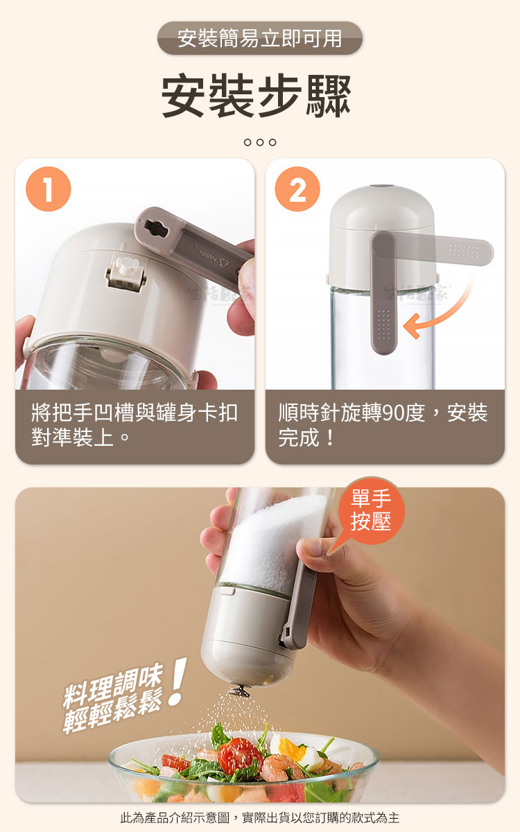 ️ 定量擁有 - 輕輕一按,定量灑出所需的份量,讓你可以輕鬆精確地控制調味比重,不再擔心過多或不夠,吃出原味,健康飲食。📏
