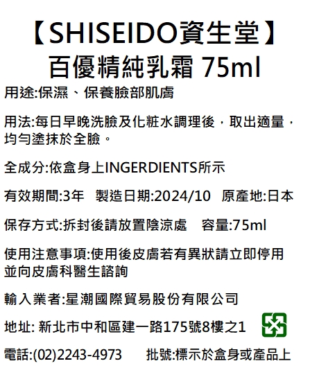 ◎Brand:SHISEIDO 資生堂 ◎Specifications: 1Set組 x 1 x 1Set組