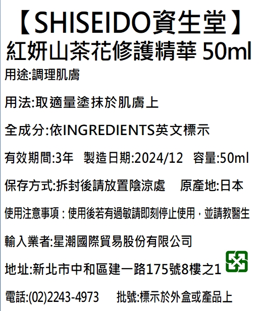 ◎Brand:SHISEIDO 資生堂 ◎Specifications: 50ml毫升 x 1 x 1PC瓶