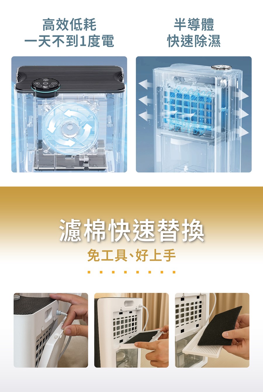 主打 靜音除濕+空氣淨化+輕巧移動 三合一設計,