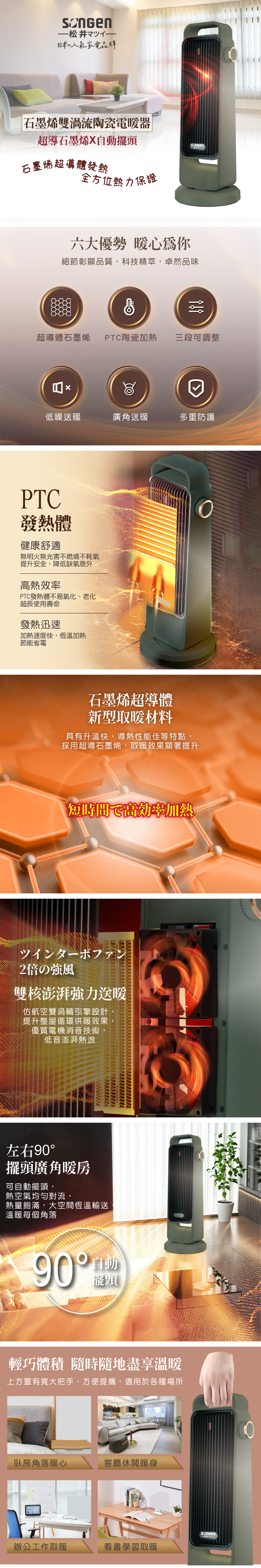 品 牌:SONGEN松井型 號:SG-2702PTC-G 橄欖綠額定電壓及額定頻率:110V / 60Hz總額定消耗電功率:1200W產品尺寸(寬x深x高):185x185x485mm商品重量:2.14KG材 質:PTC陶瓷發熱體產品保證:明台產物保險2000萬產品責任險製造沿革:45年電器專業製造,保證售後服務