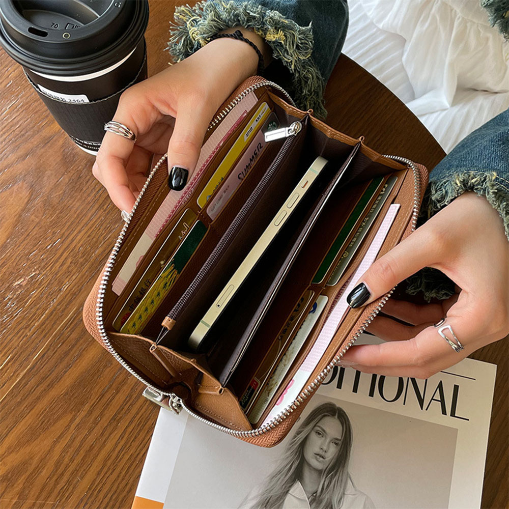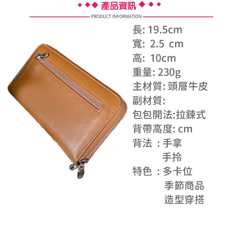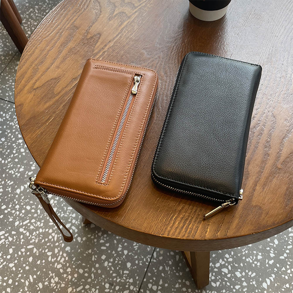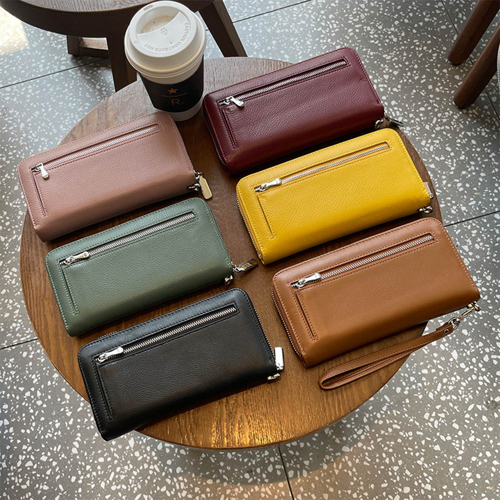 SPRING-真皮長款錢包頭層牛皮手拿包頭層牛皮長夾頭層牛皮拉鍊長夾-多色