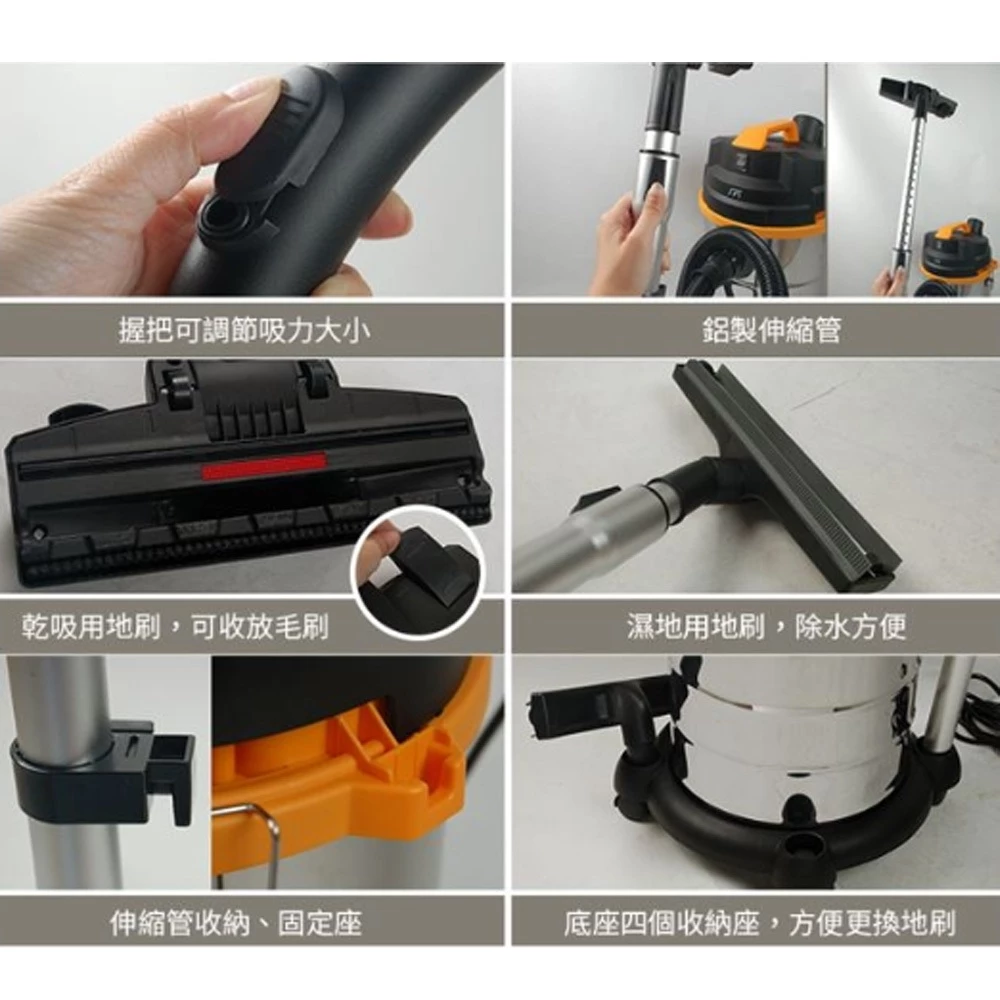 ※備 註:主體*1.伸縮管*1.伸縮軟管*1.扁吸頭*1.乾地刷*1.濕地刷*1.說明/保證書*1