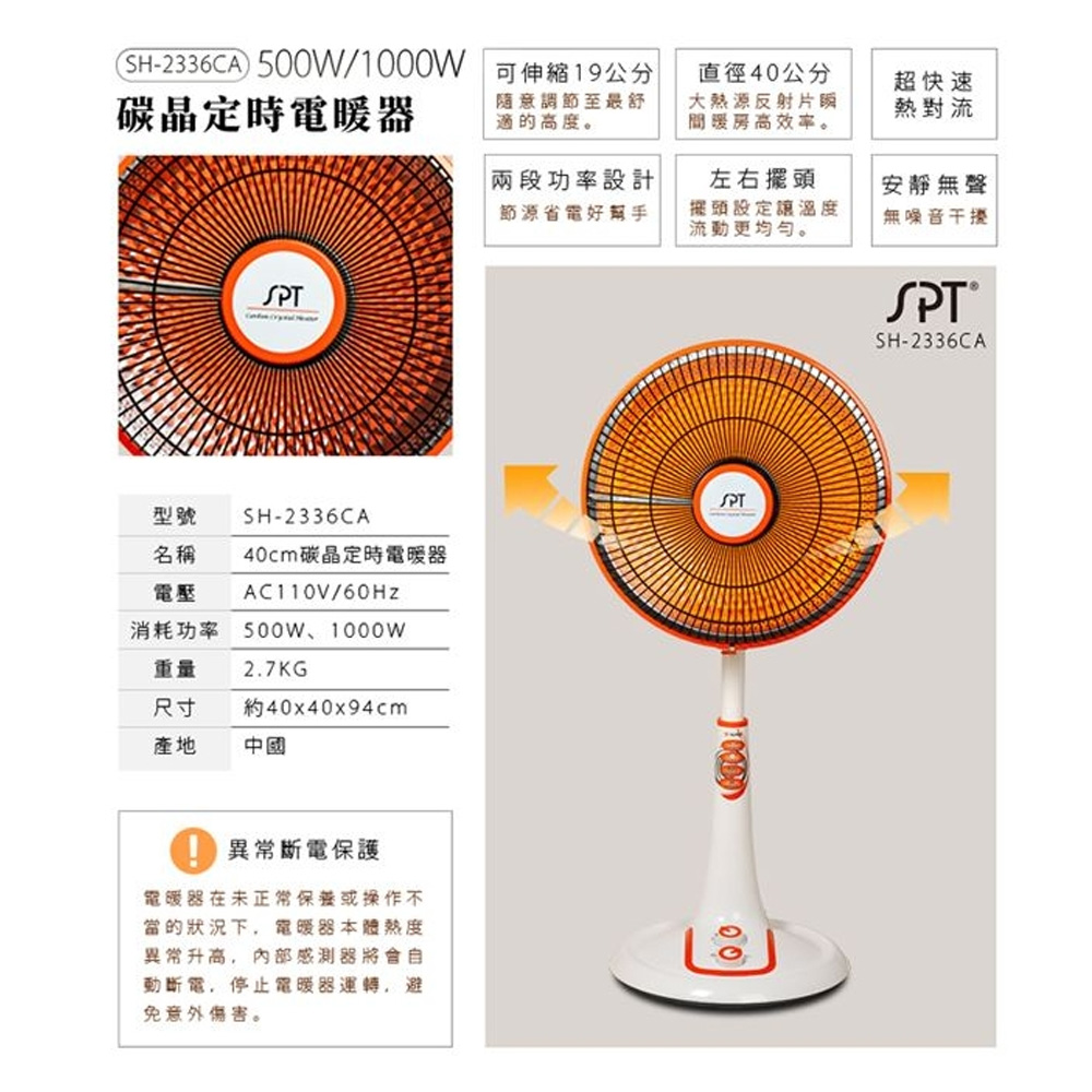 SPT Sunpentown 40cm Carbon Crystal Oscillating Timer Electric Heater SH-2336CA