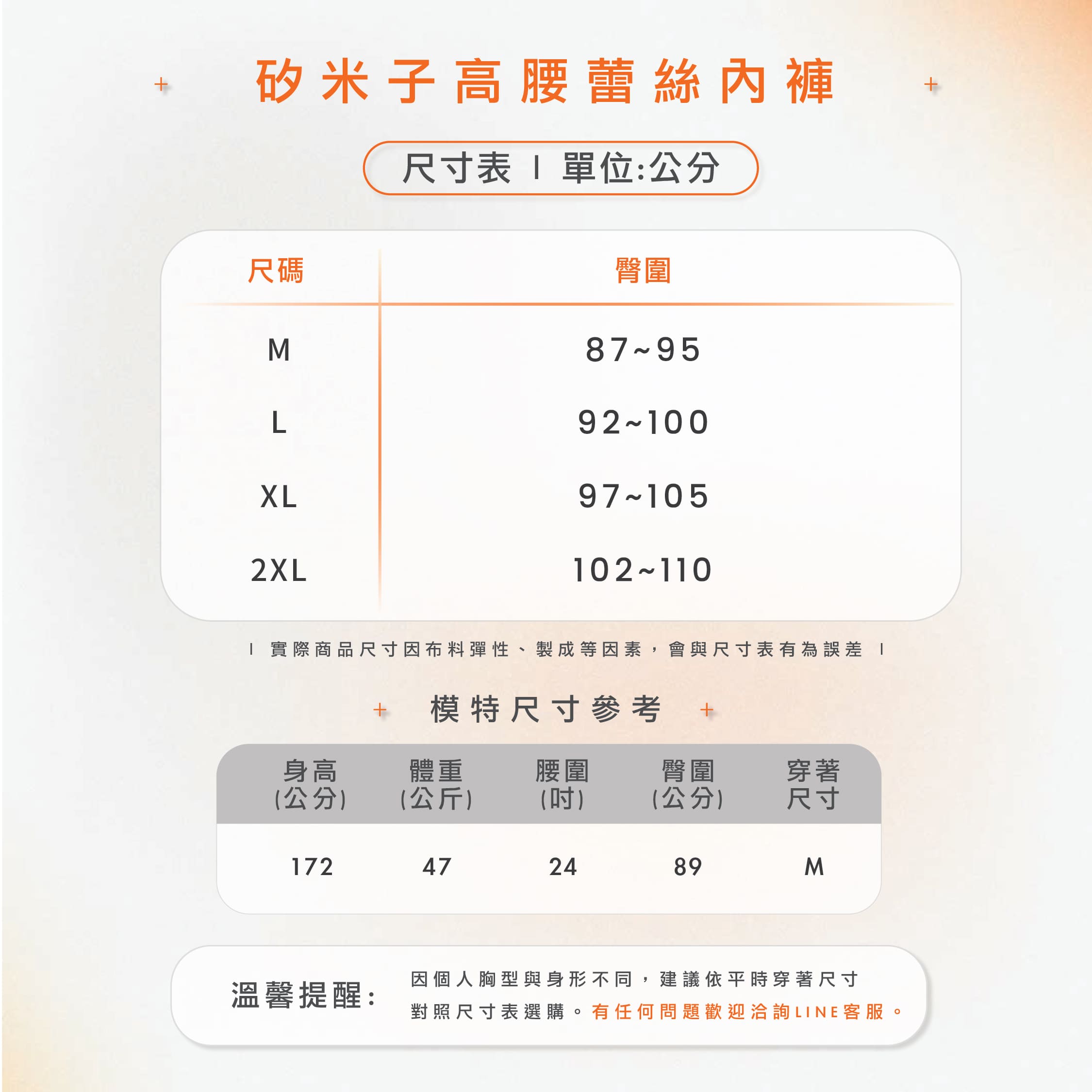 由於貼身衣物涉及個人衛生考量,本商品僅供確認材質與尺寸使用,恕不提供實際穿著試穿體驗,敬請見諒。