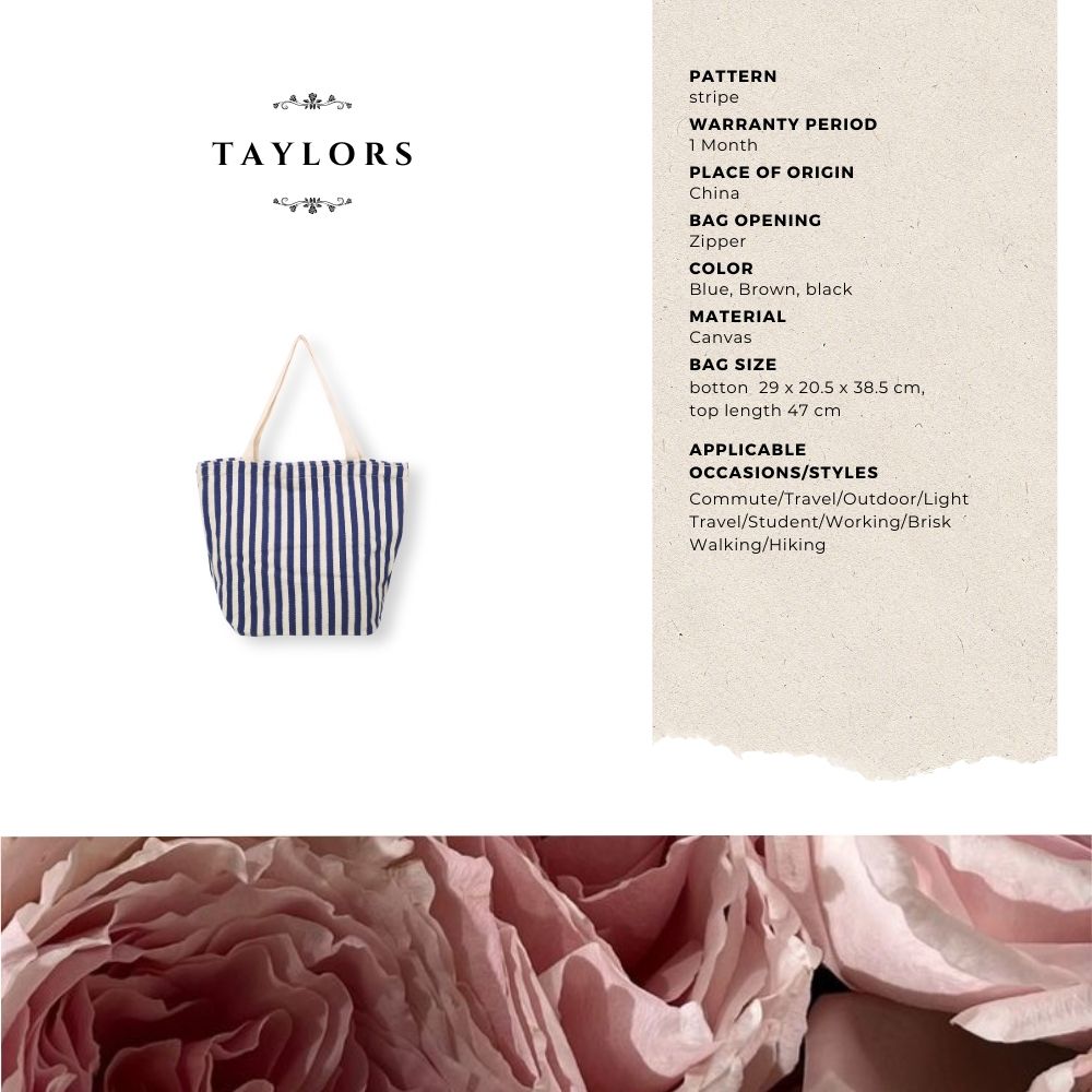 【TAYLORS】Korean style summer striped canvas tote bag