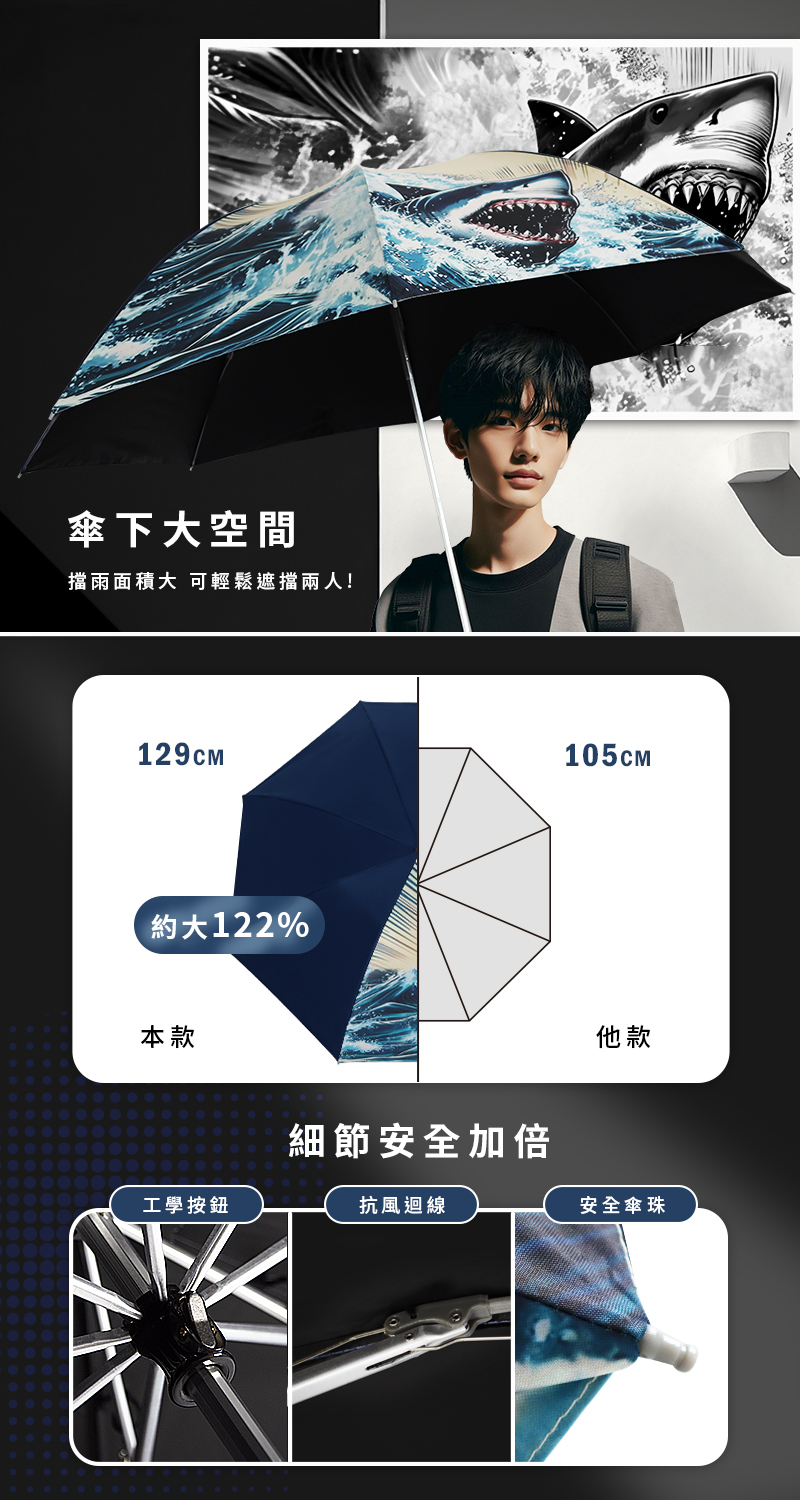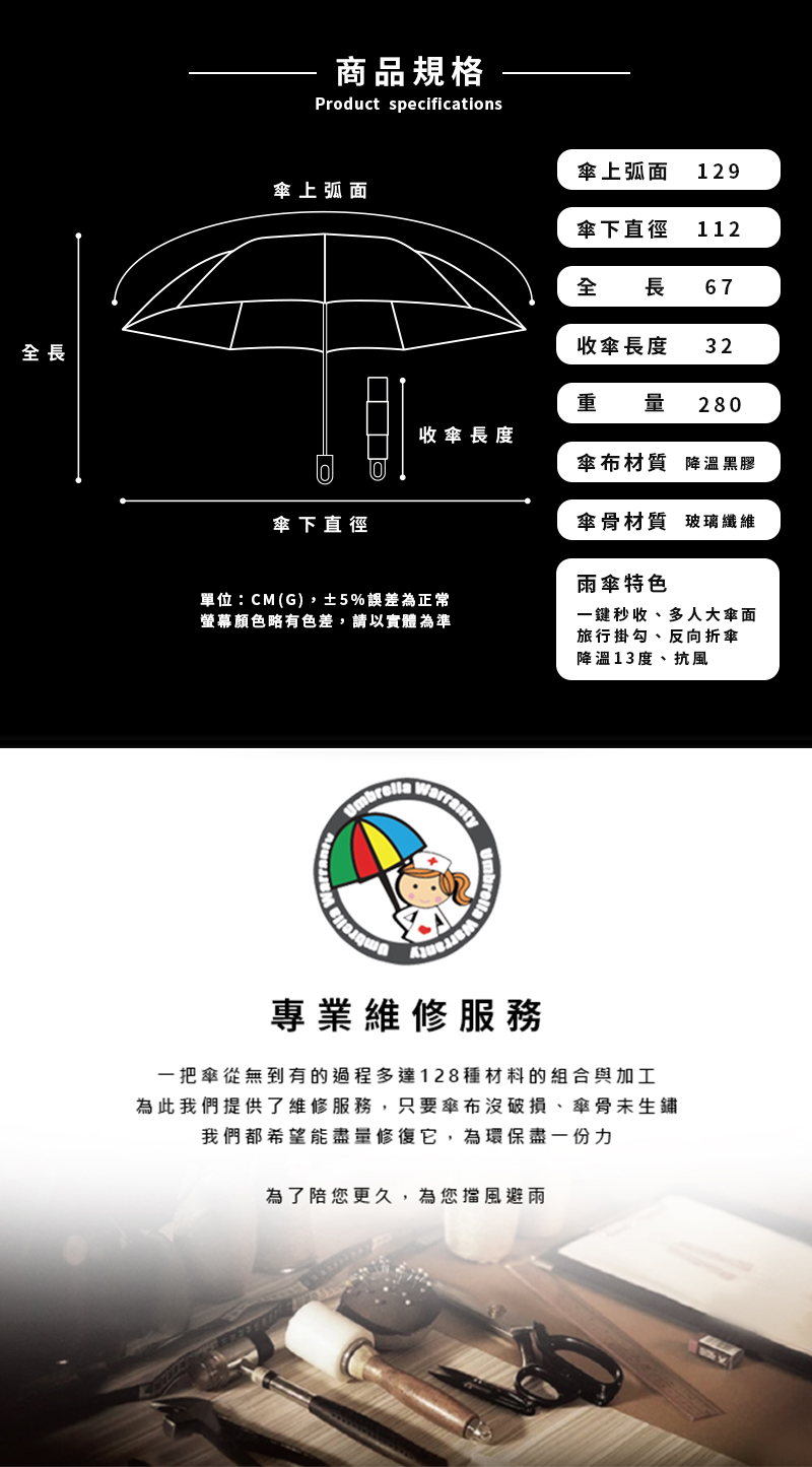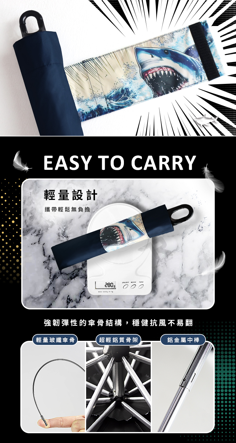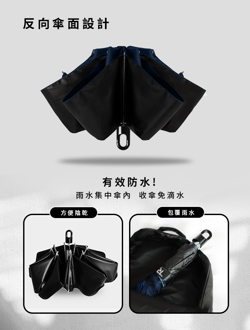 輕量大傘面,一按秒收反向收傘,阻隔雨水速乾防曬,隨行快掛