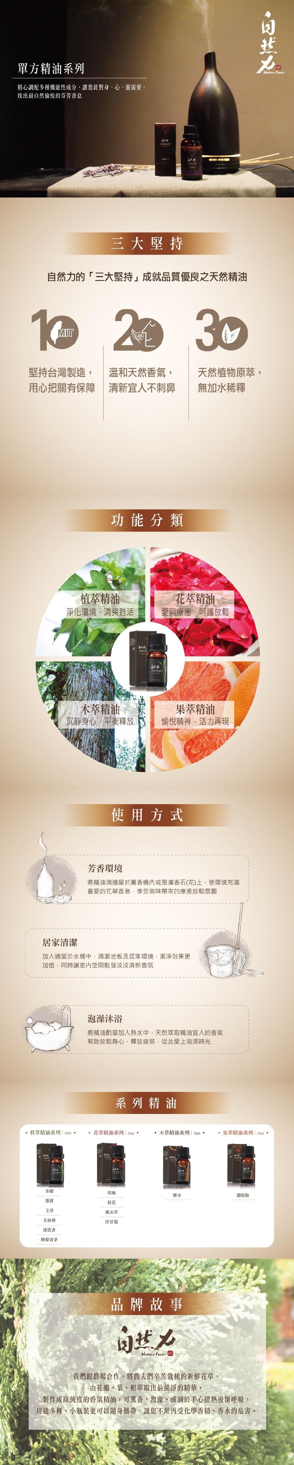 Essential oil- Rosemary 淨化空氣 提升記憶力 用最自然大地間的花、草、葉、種子萃取出原始無負擔的氣味,這股讓人莫名平靜放鬆的奇妙力量就是---自然力迷迭香擁有強烈、具穿透力的清新草本香氣,幫助淨化空氣;因其特殊的香氣,可緩解現代都市人因緊張焦慮引起的健忘、偏頭痛症狀,提升大腦能量幫肋記憶,最適合考生、上班族、高度用腦的族群。規格:◎成份:植萃精油◎使用方法:薰香-依個人喜好滴入2~5滴於薰香器具中◎保存方法:請置放於18~25℃的常溫下◎注意事項:高純度精油,孕婦及嬰幼兒請避免使用或諮詢醫生◎容量:10ml ◎保存期限:三年◎產地:台灣 Made in Taiwan★香療法無法完全取代醫療,有疾患仍需就醫處理。