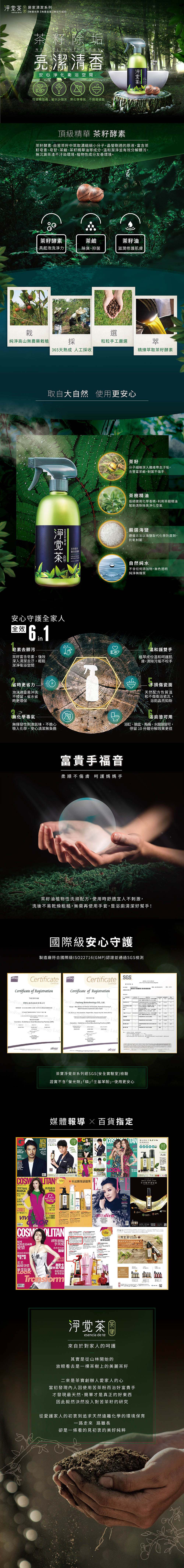 茶寶經典居家淨覺茶品牌的產品將台灣珍貴茶籽精華與香氛精油完美結合,富含草本萃取成分,溫和不刺激且不傷環境,地球的美好就讓我們一起來維護!