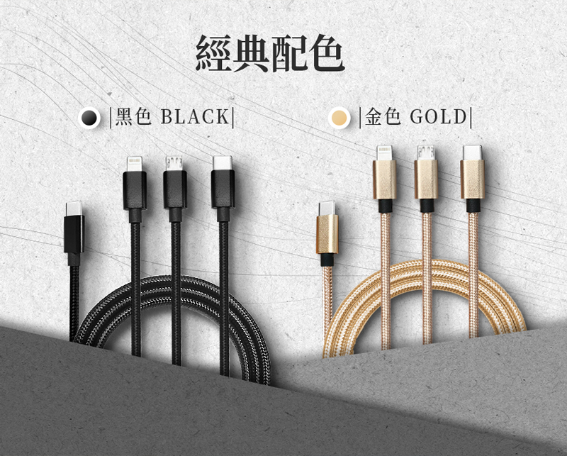 【tengoku天閤堀】超強韌USB-C三合一1.2M編織快速充電線