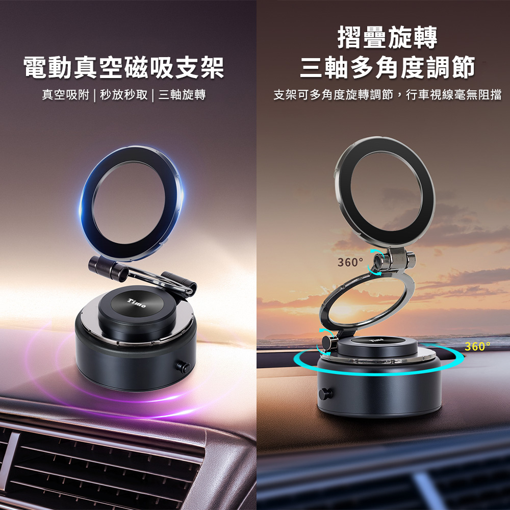 【Timo】360°旋轉真空吸附磁吸支架 magsafe磁吸支架 免黏貼 超穩吸力 穩固不易掉落三軸多角度調節 支援360度旋轉多向靈活調節手機可視角度適用於各種光滑表面 隨貼隨取