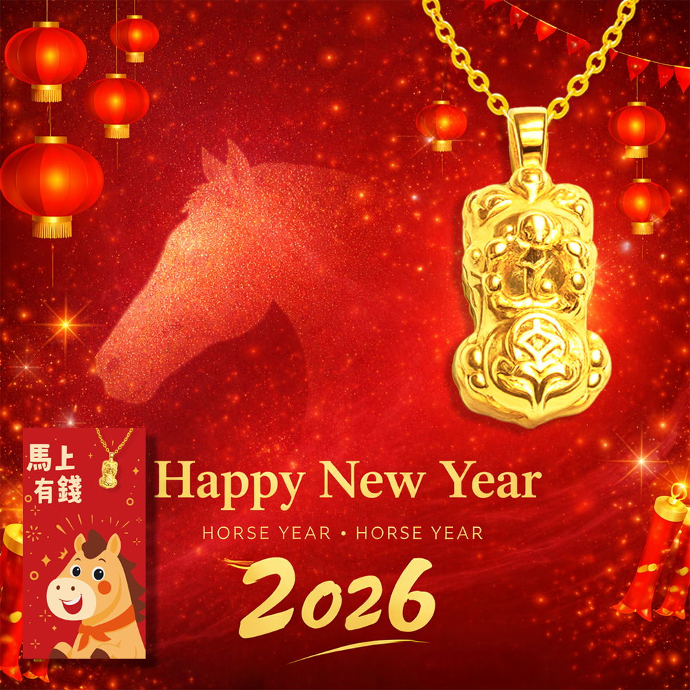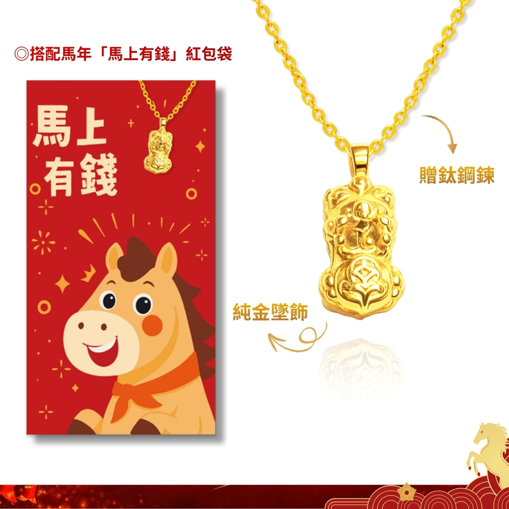名稱:馬上有錢 貔貅項鍊紅包袋 約重0.02錢±0.01 (純金999) 隨機贈送馬年御守 (馬年 過年 送禮)
