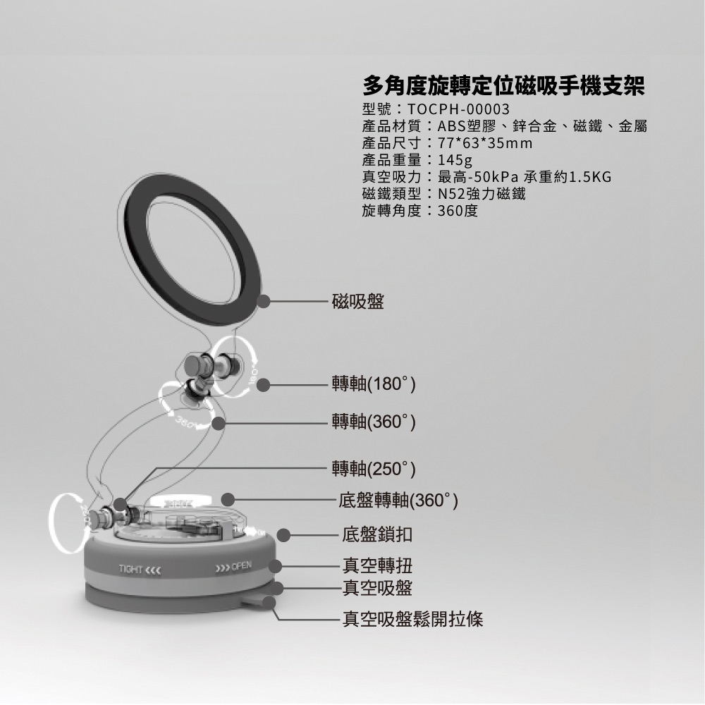 ● 複合吸盤、可吸附多種材質● 合金支撐臂更穩固● 多角度四向調節、視角不受限● 摺疊體積小、收納方便隨身攜帶