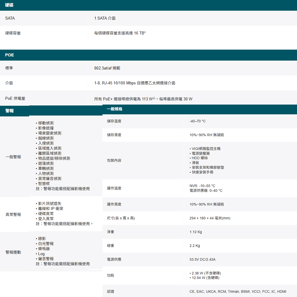 1 個 SATA介面,最高支援 16 TB *