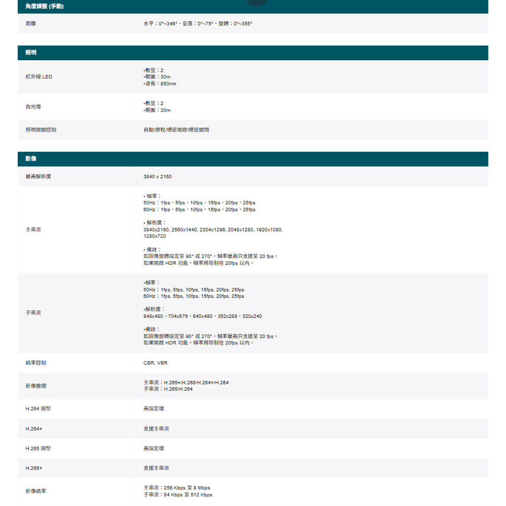 4K (8MP) 超高 HD 畫質和全天候全彩