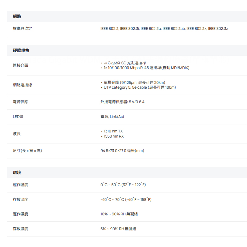 -1×10/100/1000Mbps自動協商RJ45連接埠支援自動MDI/MDIX。