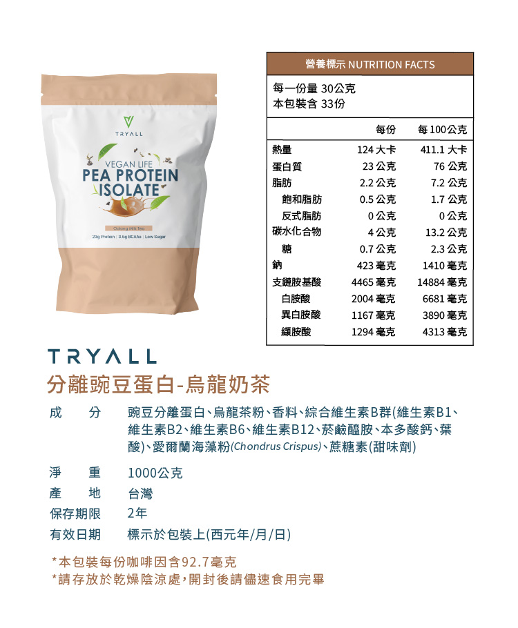 ●每份蛋白質含量高達25g●每份豌豆蛋白(30公克)中約含3.8公克BCAA●富含18種胺基酸,不含過敏原的純素