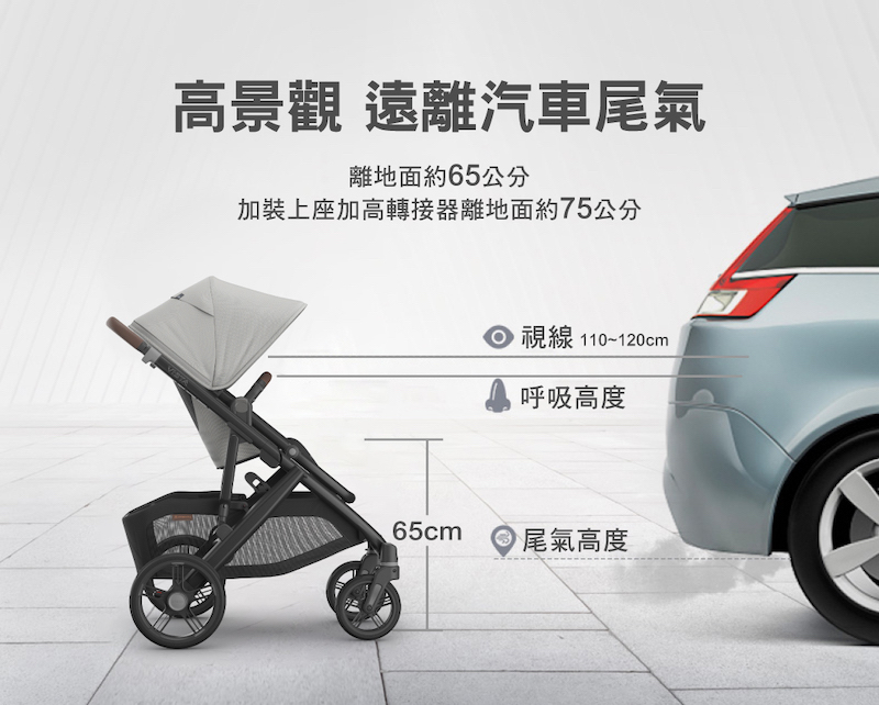 並可搭配睡箱及提籃。 -座椅高度較高,出外可直接當兒童餐椅使用。