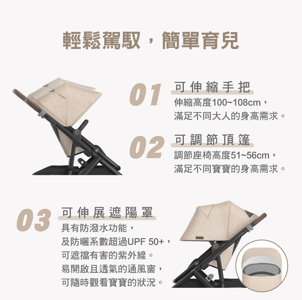 可遮擋有害的紫外線。易開啟且透氣的通風窗,可隨時觀看寶寶的狀況