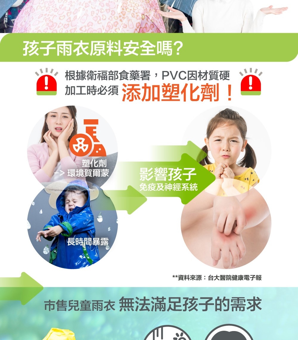 ◆預留書包空間:多變的陰雨天也能輕鬆套上,帽緣、袖口防水包邊條設計,風雨不滲入,孩子肌膚好乾爽舒適。