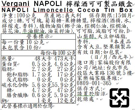 ◎Brand:Vergani NAPOLI ◎Specifications: 100g克 x 1 x 1BOX盒