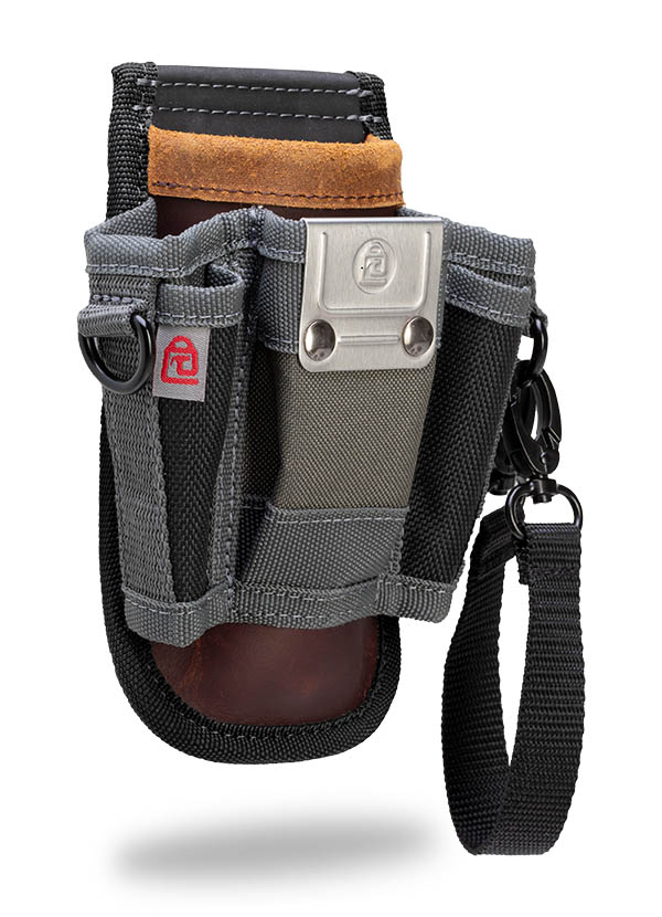 可拆卸工具袋,附 6 個口袋、不銹鋼捲尺夾、2 個 D 形環和磁性翻蓋,可固定在腰帶或褲袋上
