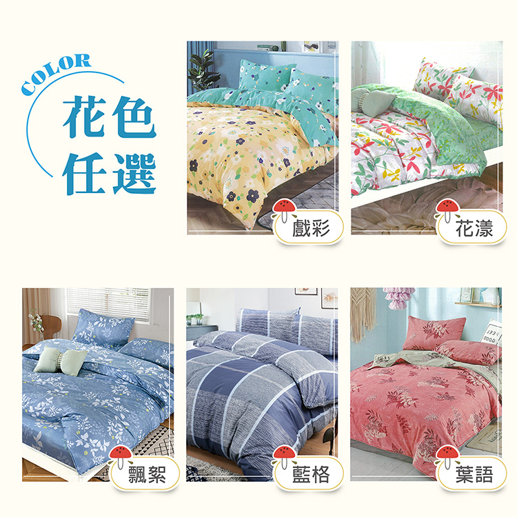 ★內容件數與尺寸: 加大床包x1件-6x6.2尺(180x186cm) 鋪棉兩用被*1件-6x7尺_(180x210cm) 枕套x2個(48x75cm)