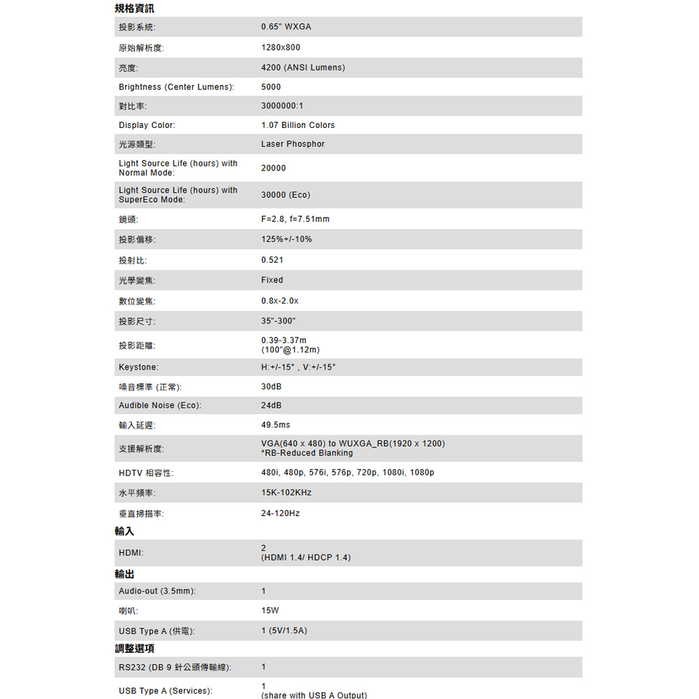-4,200 ANSI 流明,適合各種環境下提供明亮影像
