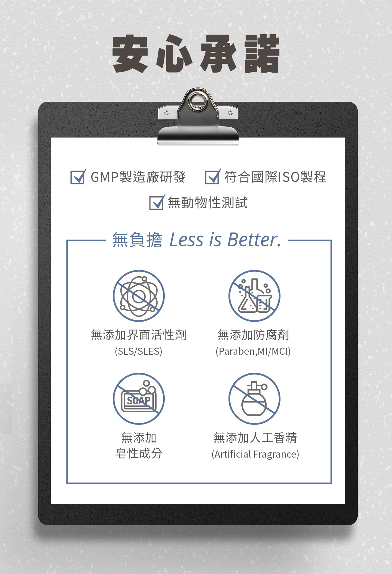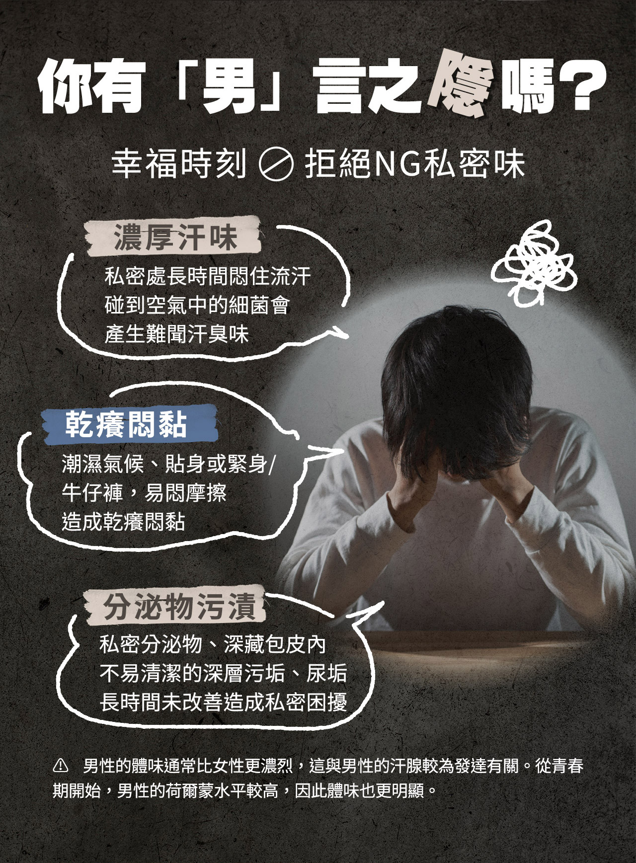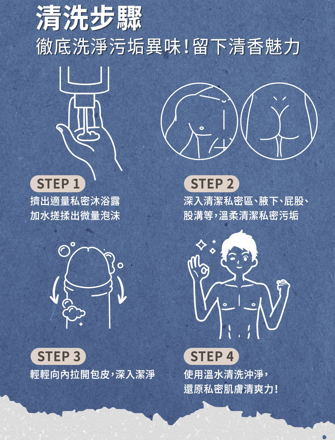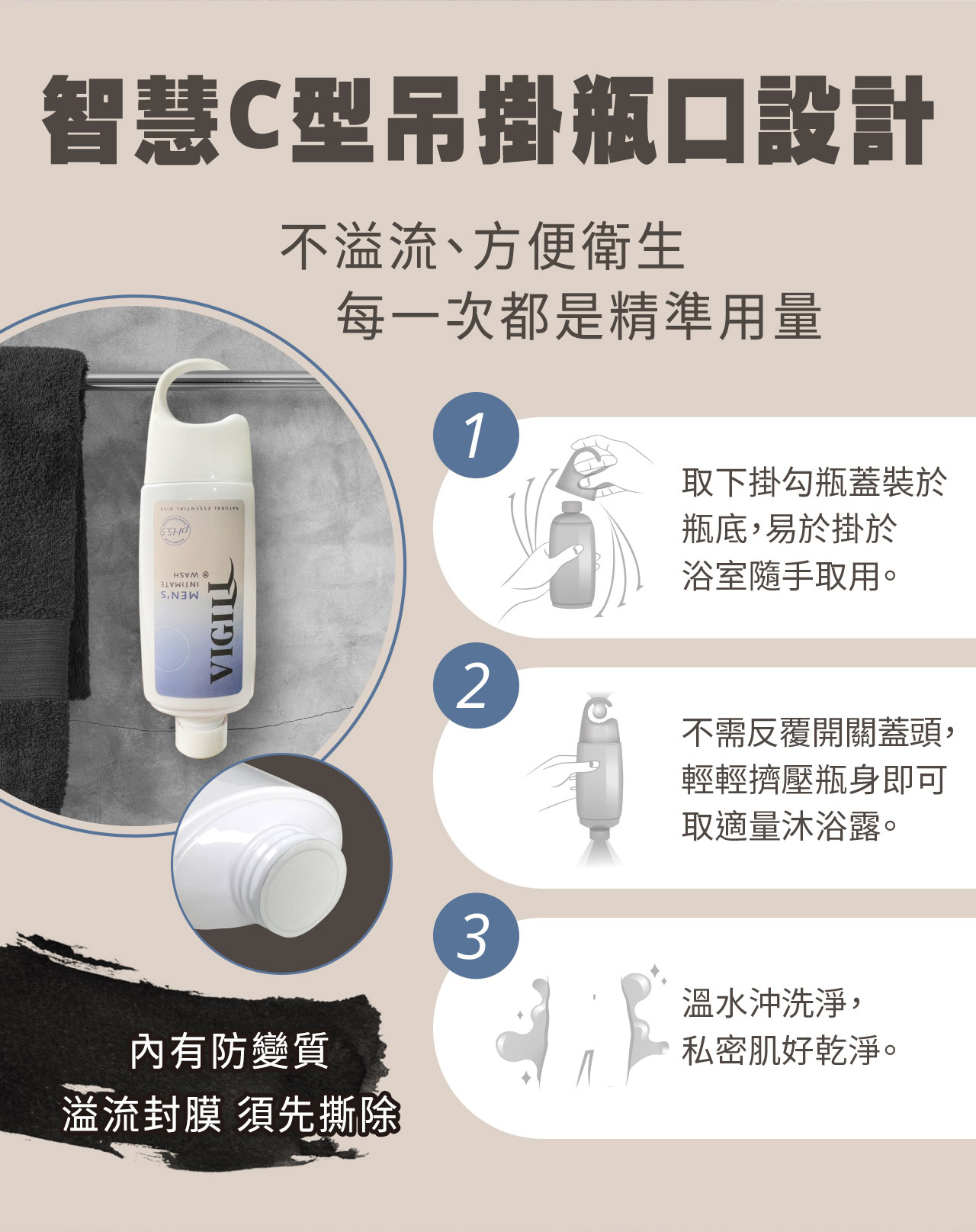 清新淨味-複方天然系男人味精油,佛手柑、薰衣草、天竺葵精油,洗淨汗水、尿液、異味。舒適親膚- pH5.5平衡親膚配方,搭配胺基酸系潔淨成分的細緻泡沫,清爽親膚。賦活私密肌-南瓜籽萃取與PCA鋅元素,賦活男性私密肌,增添魅力。修護肌膚-添加神經醯胺及海洋深層水微量元素。