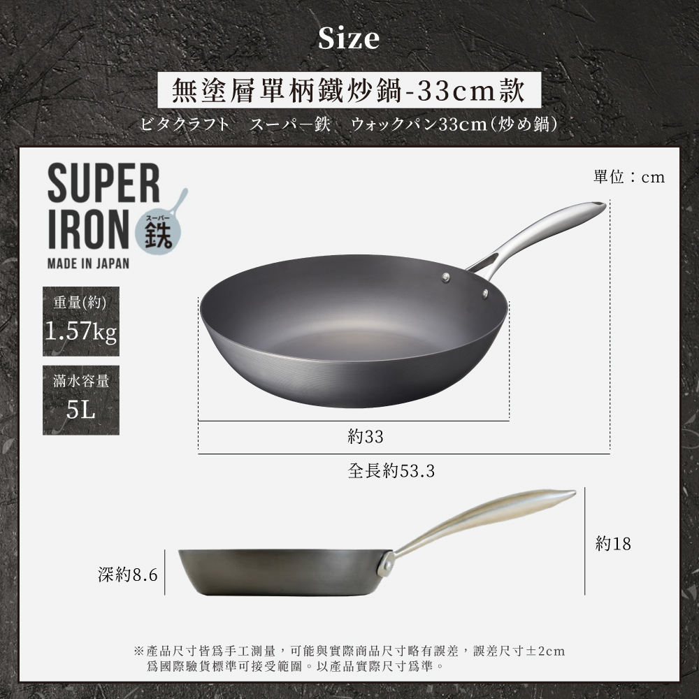 【vitacraft】Japan-Made Nitrided Iron Uncoated Single-Handle Wok 33cm (Super Iron Series)