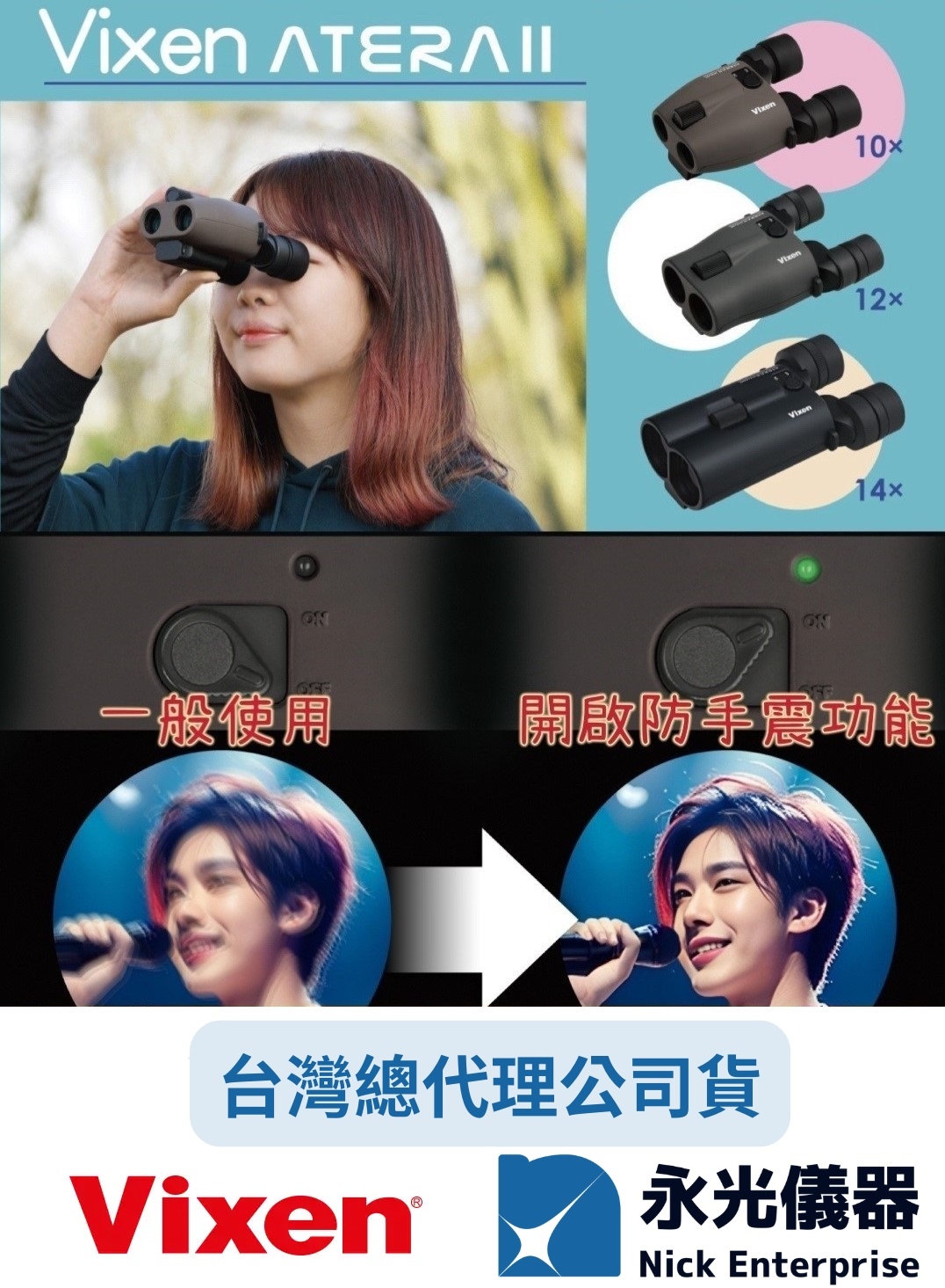 Vixen ATERA II H12x30 防震雙筒望眼鏡,極輕巧。擁有手震補正機制的輕巧雙筒望眼鏡。
