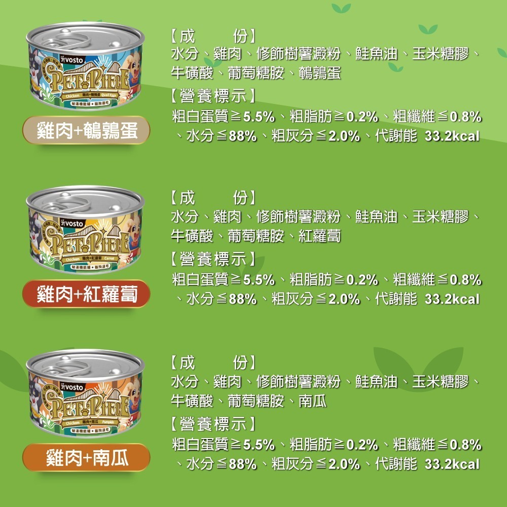 [承佳] 24罐/箱購 VOSTO 沃司托寵物 犬貓用 秘湯機能銀罐 80g 犬貓通用 雞肉底 雞肉罐 6種口味 雞肉貓罐 秘湯銀罐