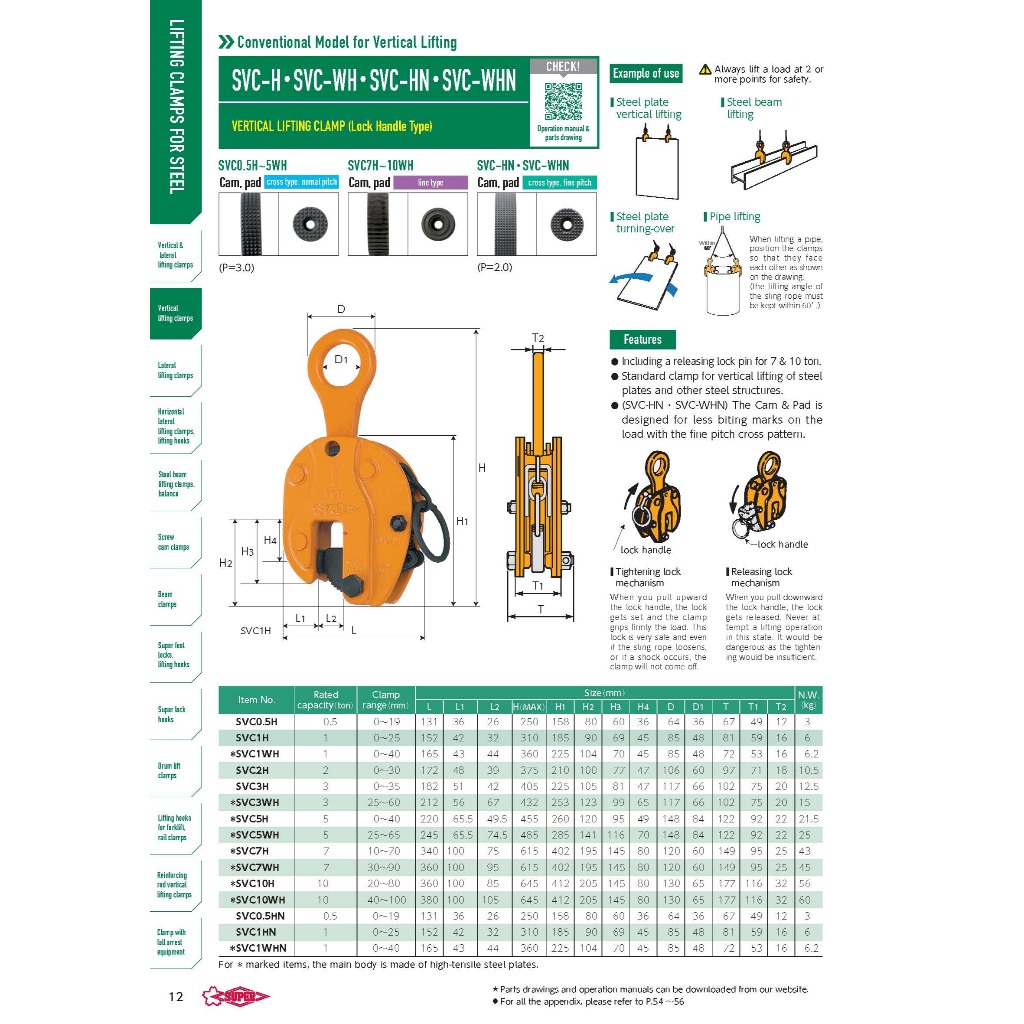 SVC-2H 夾持範圍0-30mm 安全荷重:2T 重量:10.5公斤